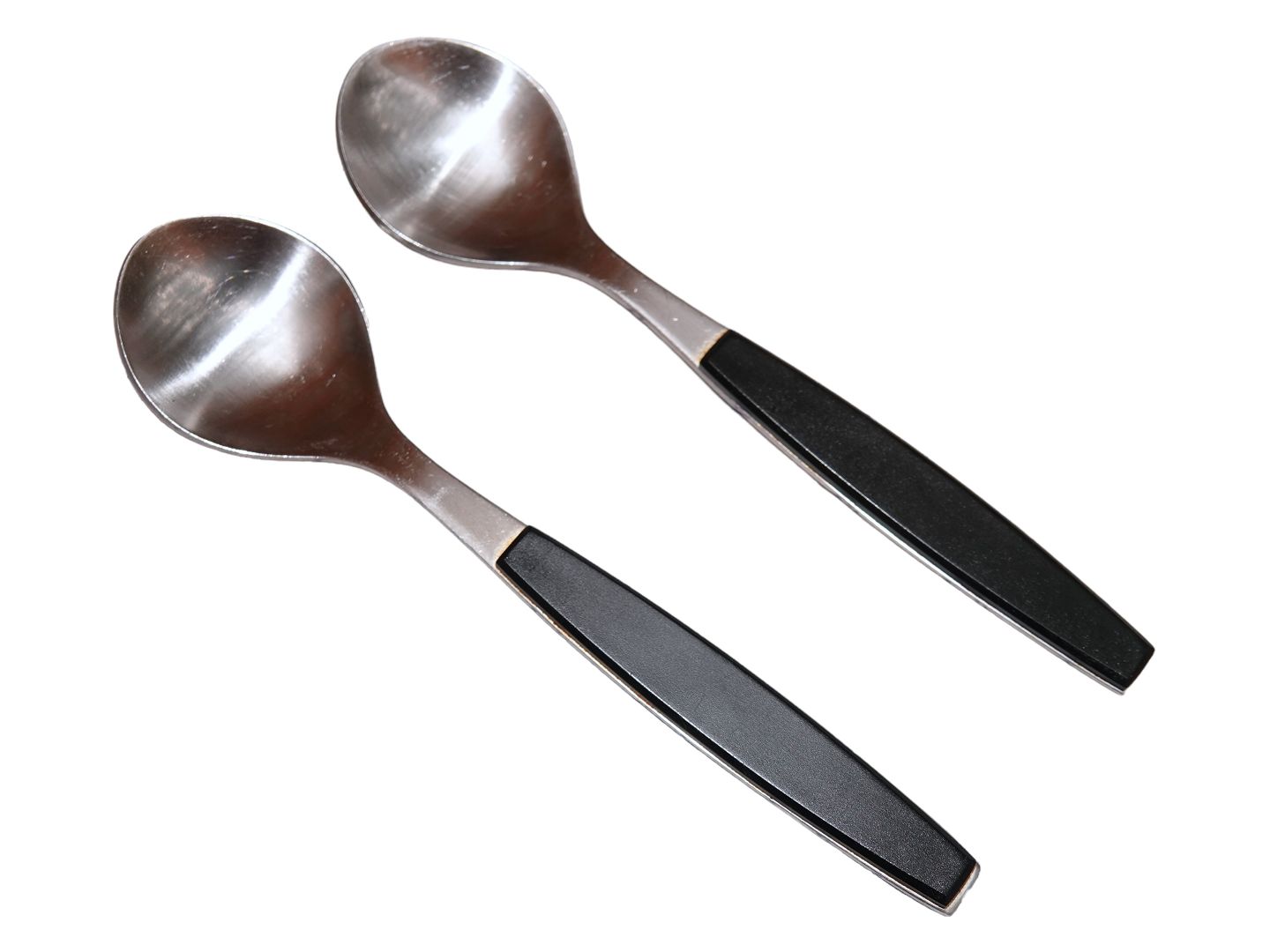 Georg Jensen Sort Strata, dessertske. Designet af Henning Koppel i 1975. Rustfrit stål og skaft af plast. Længde 16,5 cm. Fin og velholdt stand.