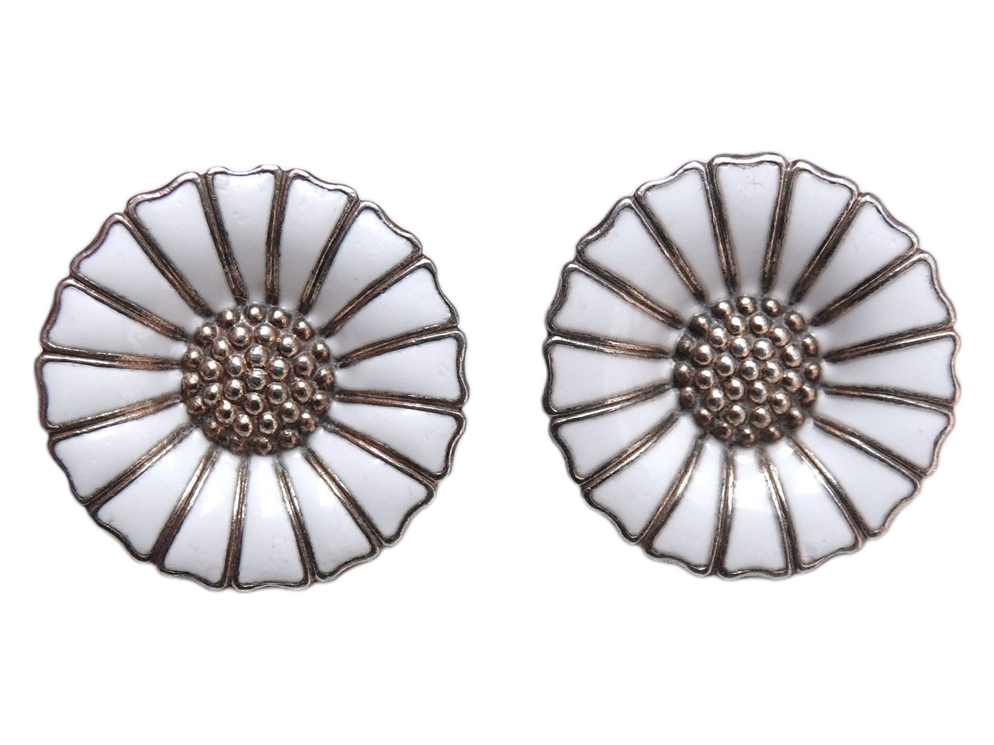 Anton Michelsen silver, Daisy ear screws with enamel.