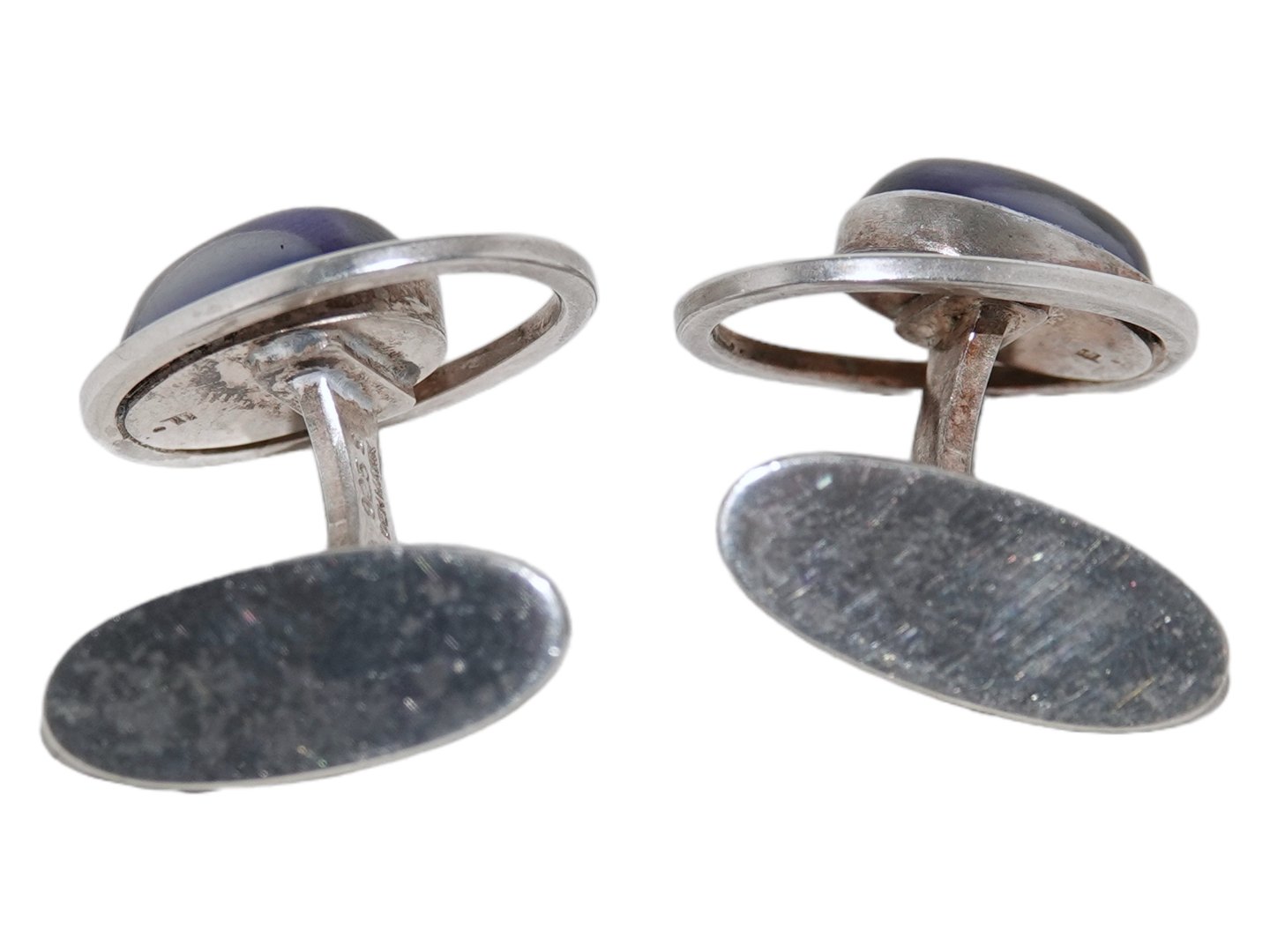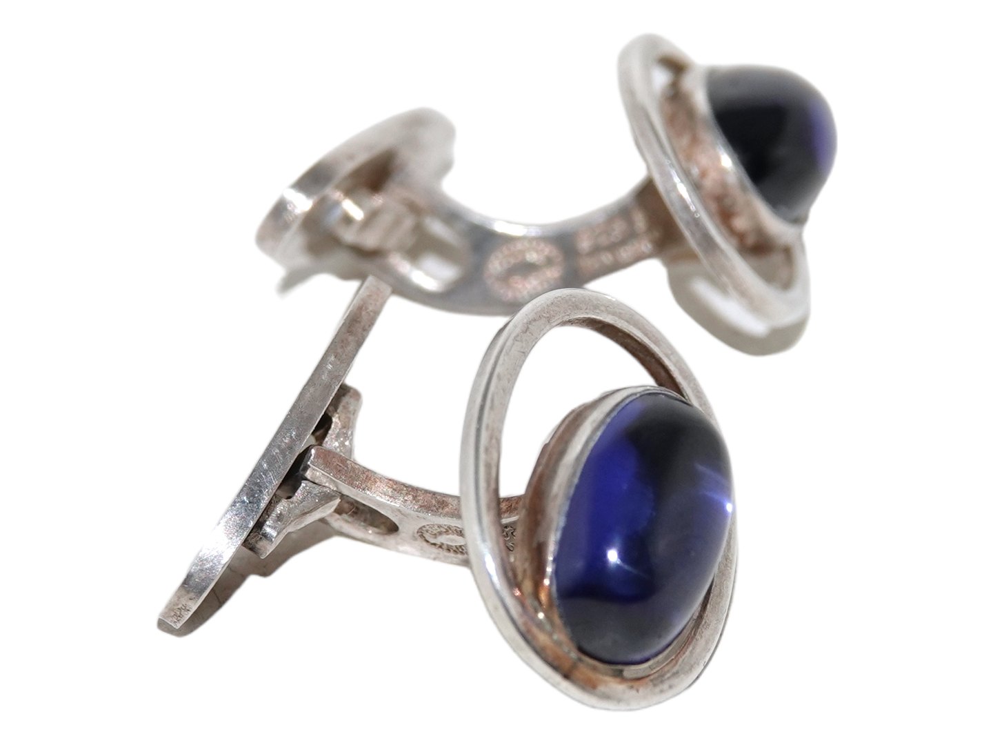 Georg Jensen sterlingsølv, par manchetknapper med blå sodalite sten. Selve manchetten måler 2,0 x 1,5 cm. Velholdt stand.