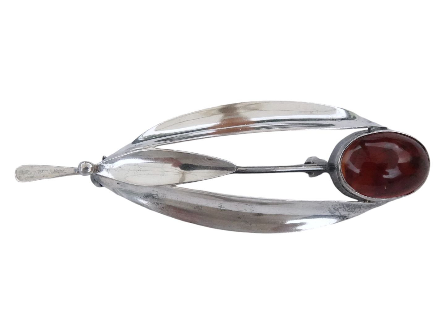 Danish sterlingsilver brooch with amber from around 1950 to 1970.