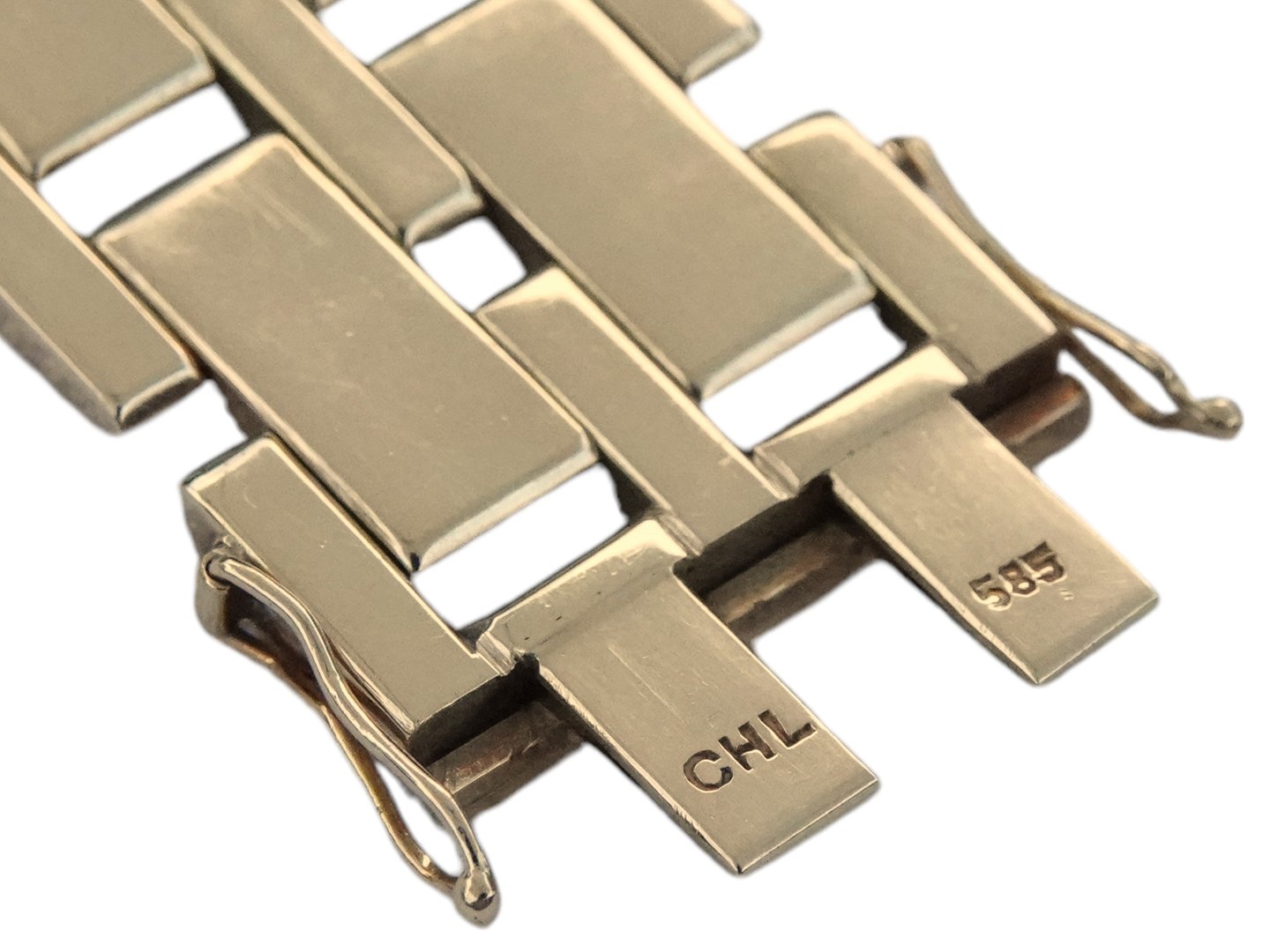 14 Karat guld, bredt blok armbånd med fem rækker flot i kraftig kvalitet.