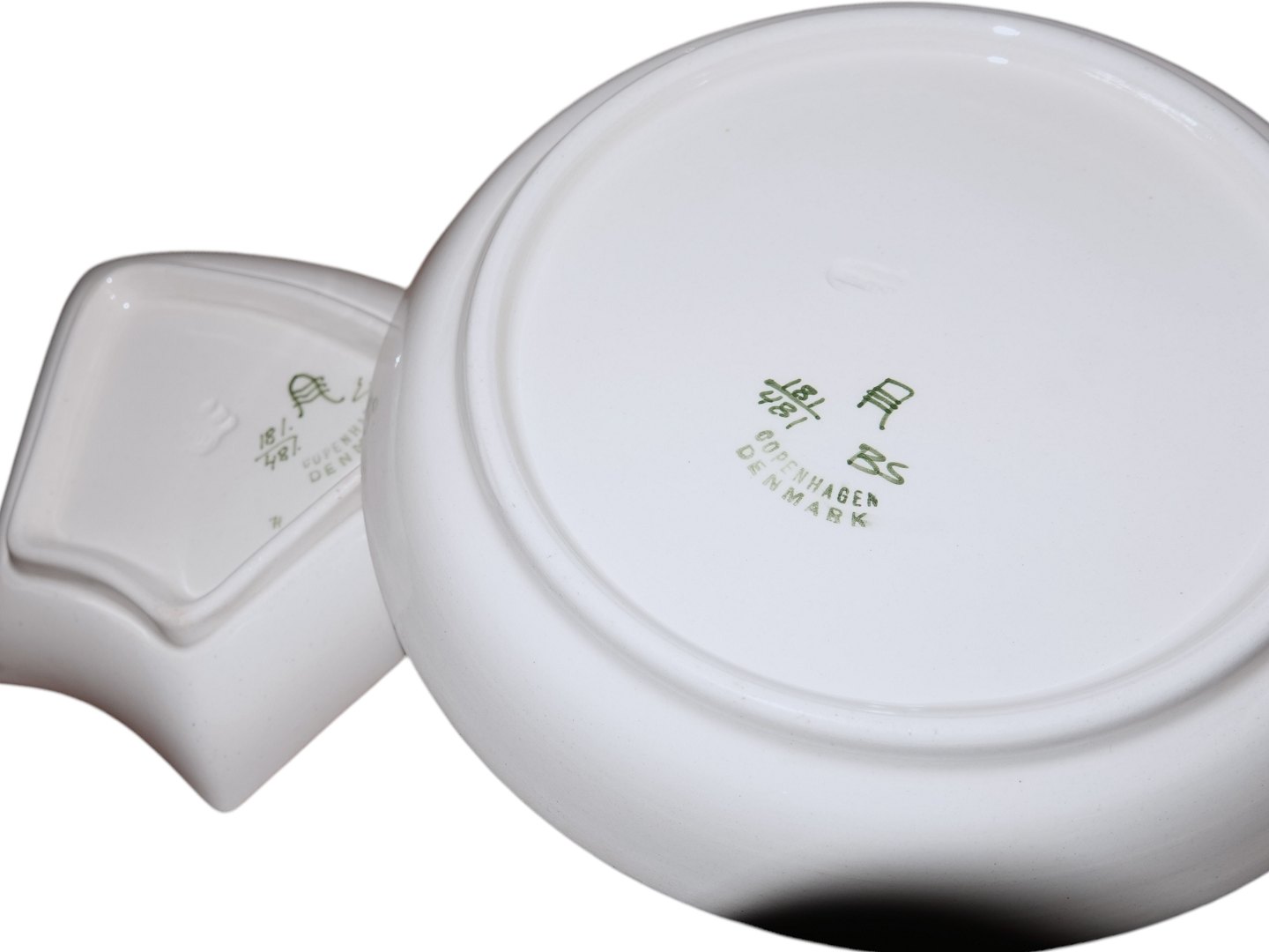 There are a few small discolouring spots in the glaze otherwise perfect condition.