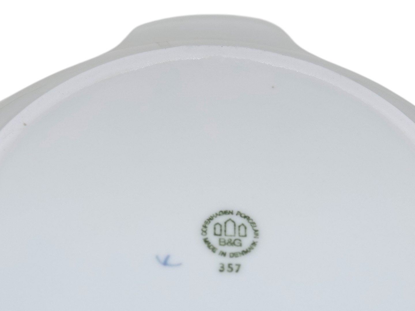 Bing & Grøndahl Julerose, kagefad. Af fabriksmærket kan det udledes, at denne er produceret mellem 1970 og 1983. Dekorationsnummer 357. 1. sortering. Længde 24,5 cm. Perfekt stand uden fejl.