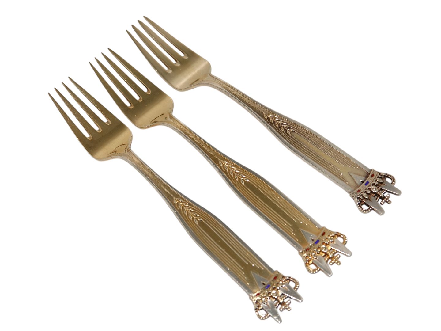Anton Michelsen forgyldt sterlingsølv, mindegaffel fra 1958. I anledning af Prinsesse Margrethes 18 års fødselsdag den 16. april 1958. Designet af Carsten Frölich. Længde 15,8 cm. Fin og velholdt stand.