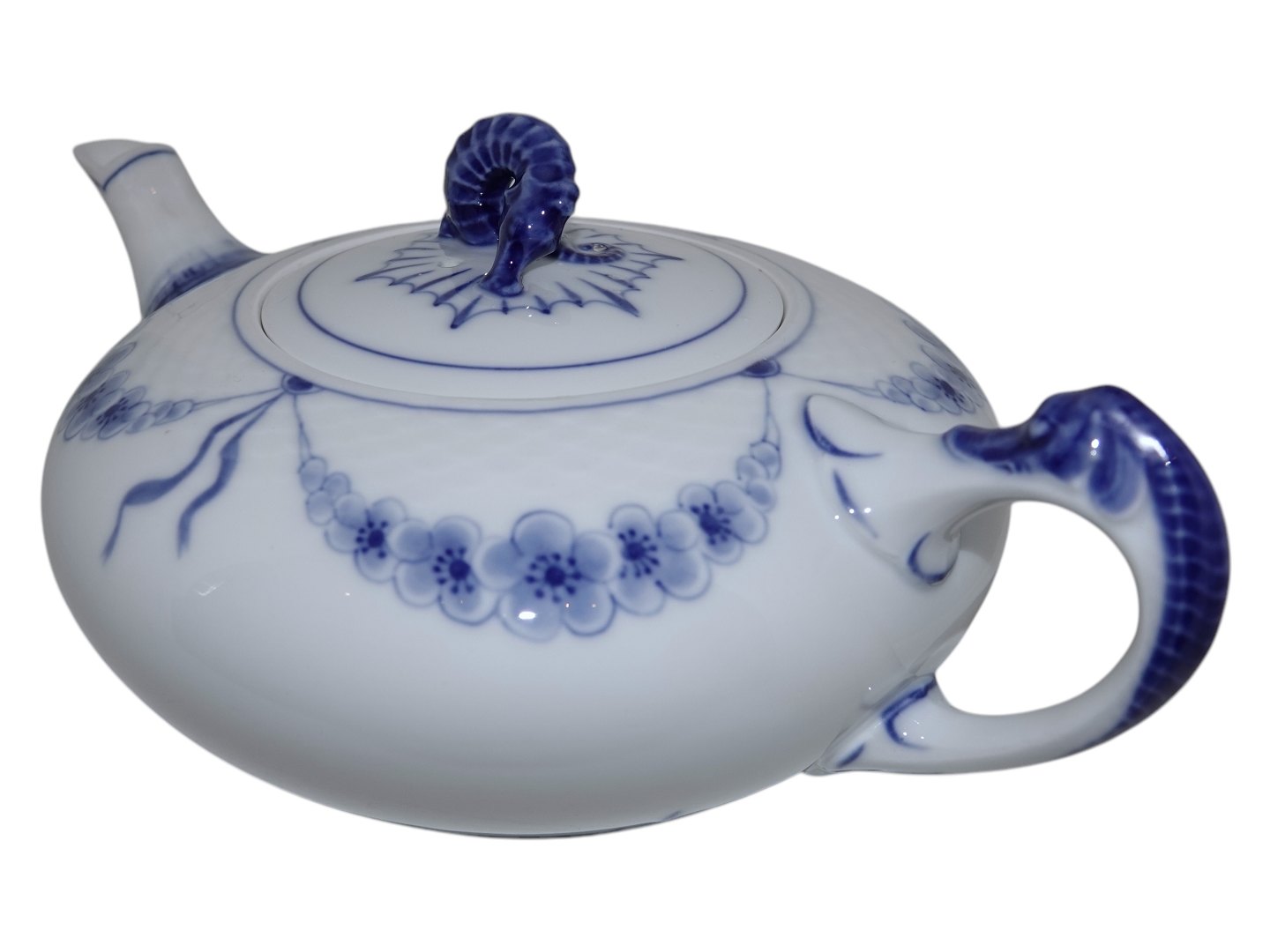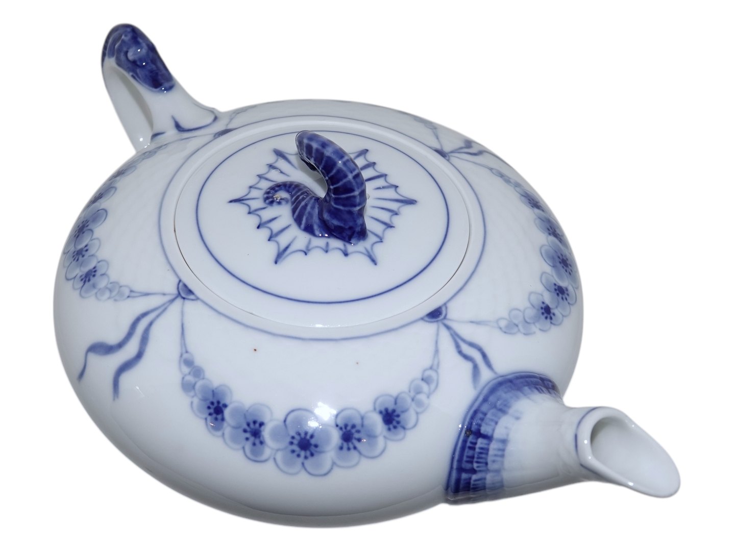 Bing & Grøndahl Empire, stor ufo-formet tekande. Af fabriksmærket ses det, at denne er produceret mellem 1915 og 1948. 1. sortering men har to små pletter i glasuren, se nærfoto. Længde 27,5 cm. Perfekt stand uden fejl.
