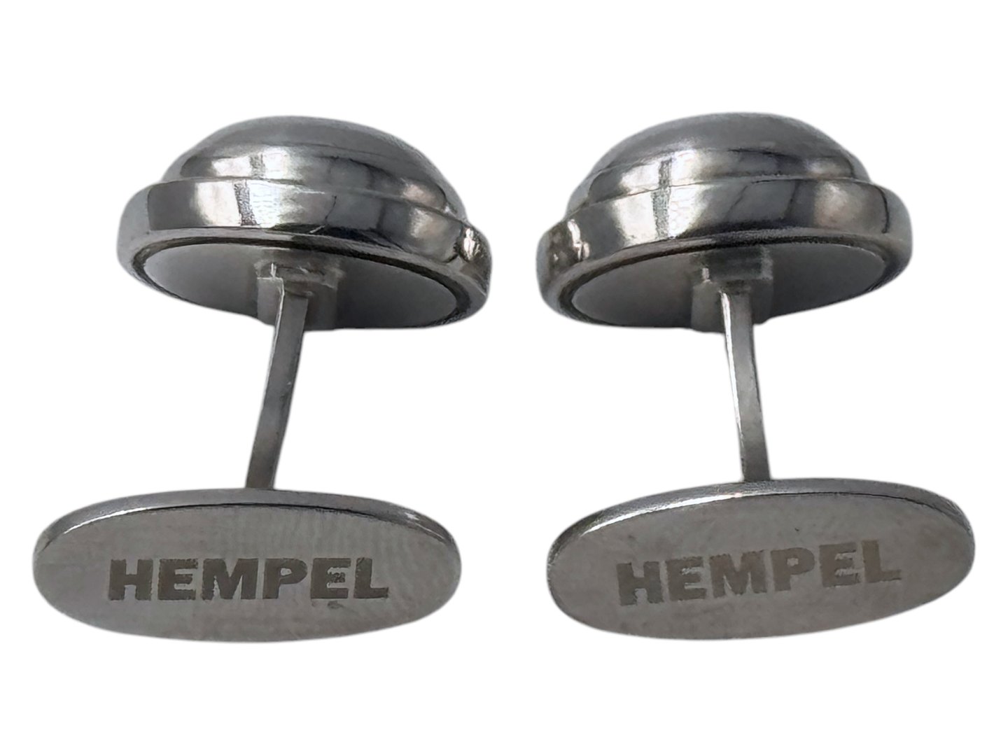 Georg Jensen sterling silver, cufflinks. Design number 44B with a logo "HEMPEL" on the backside. Measures 1.5 by 1.0 cm. Excellent condition.