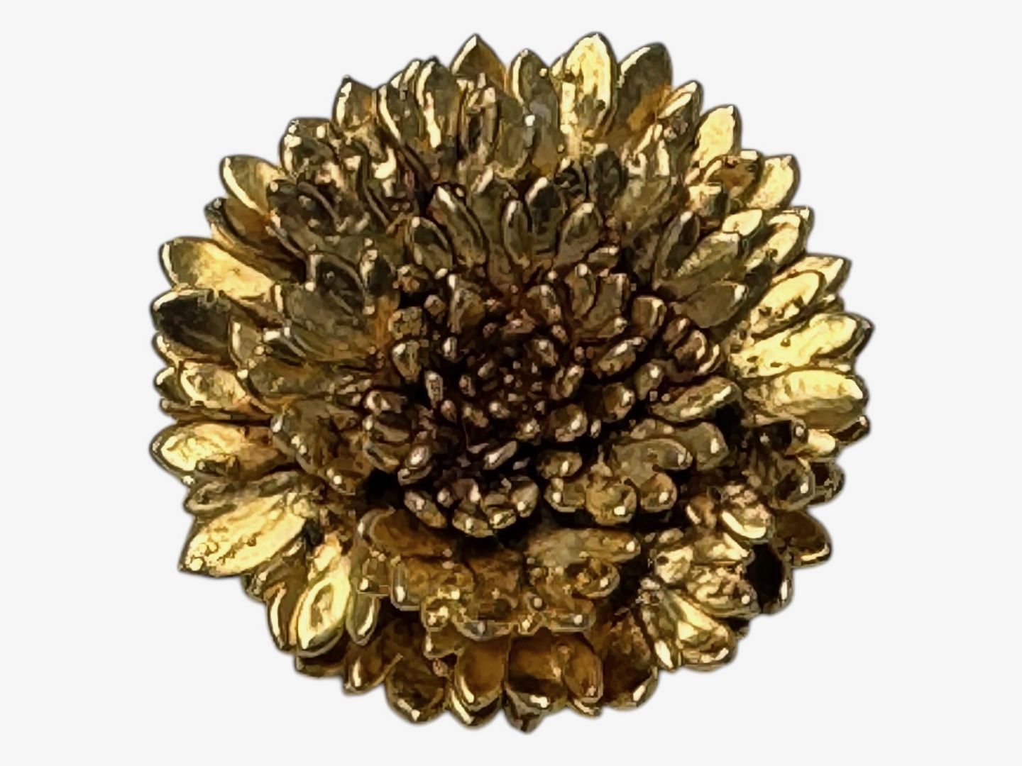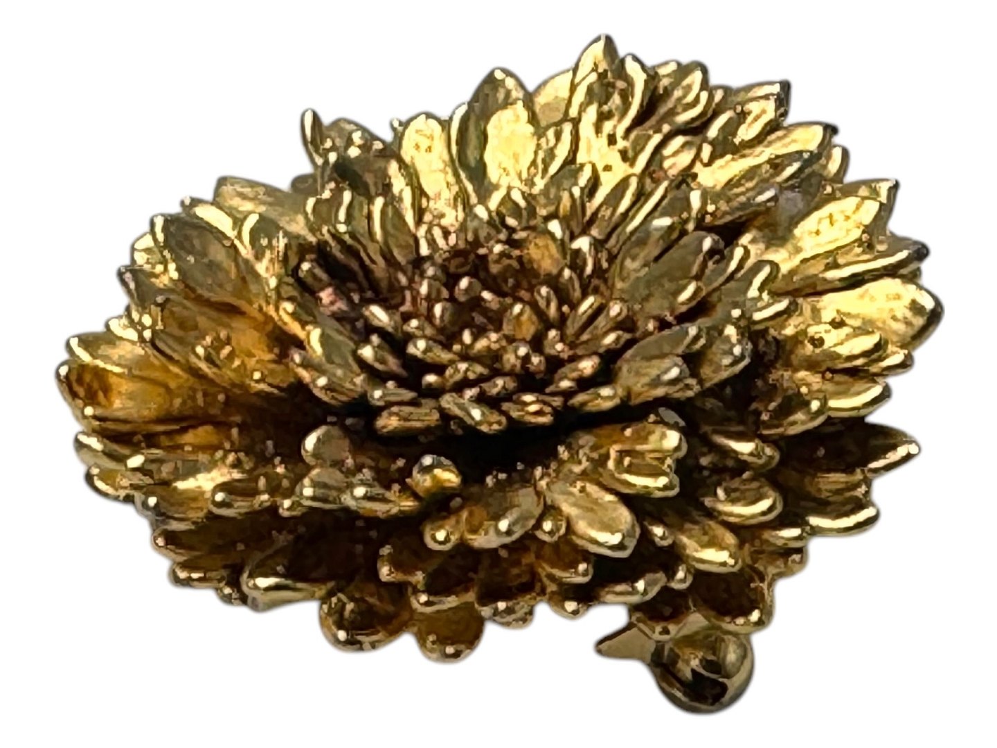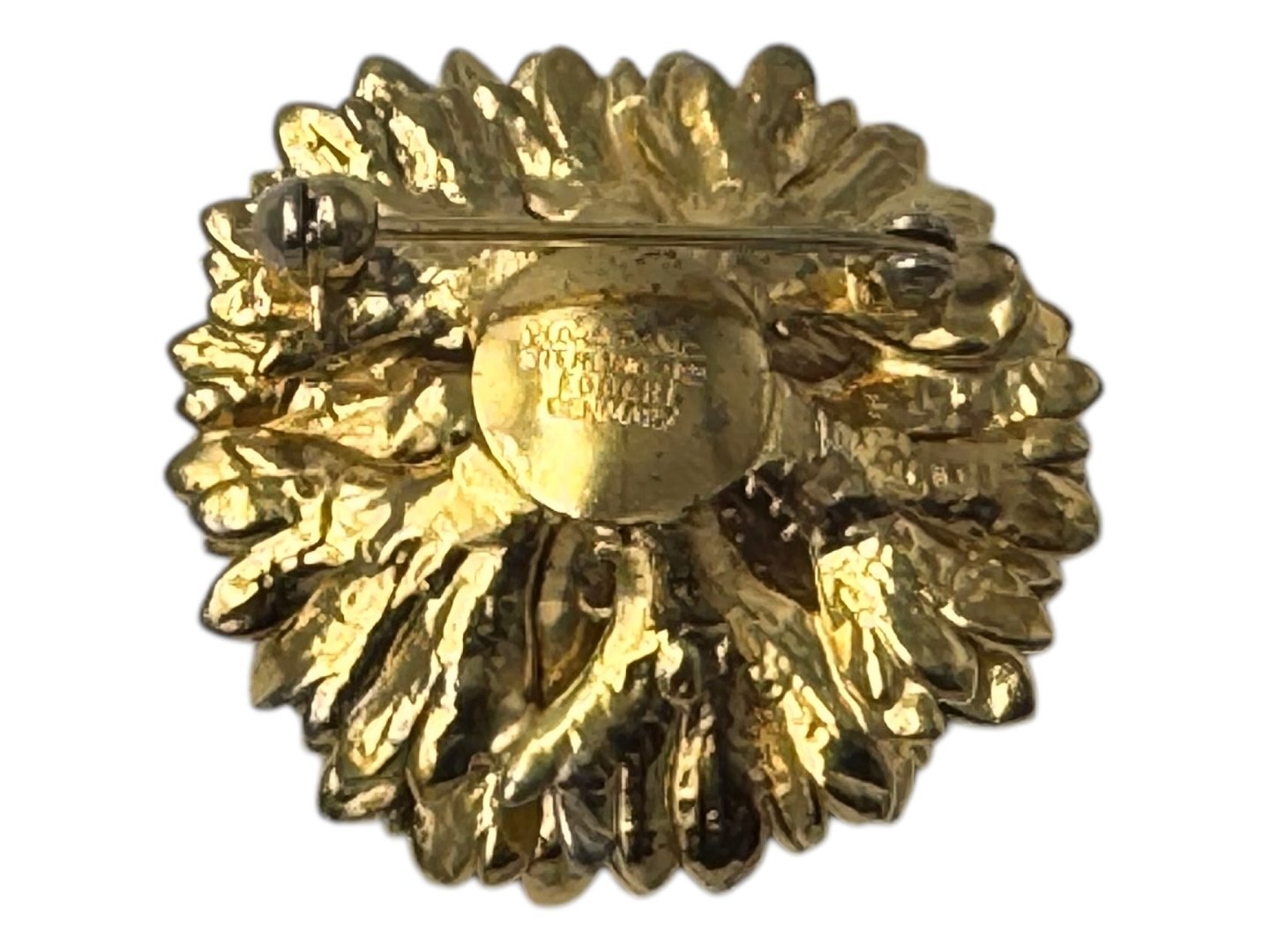 Flora Danica broche i forgyldt sterlingsølv i kraftig kvalitet. Designet af Orla Eggert. Stemplet "EGGERT SILVER DENMARK". Diameter 3,0 cm. Fin stand.