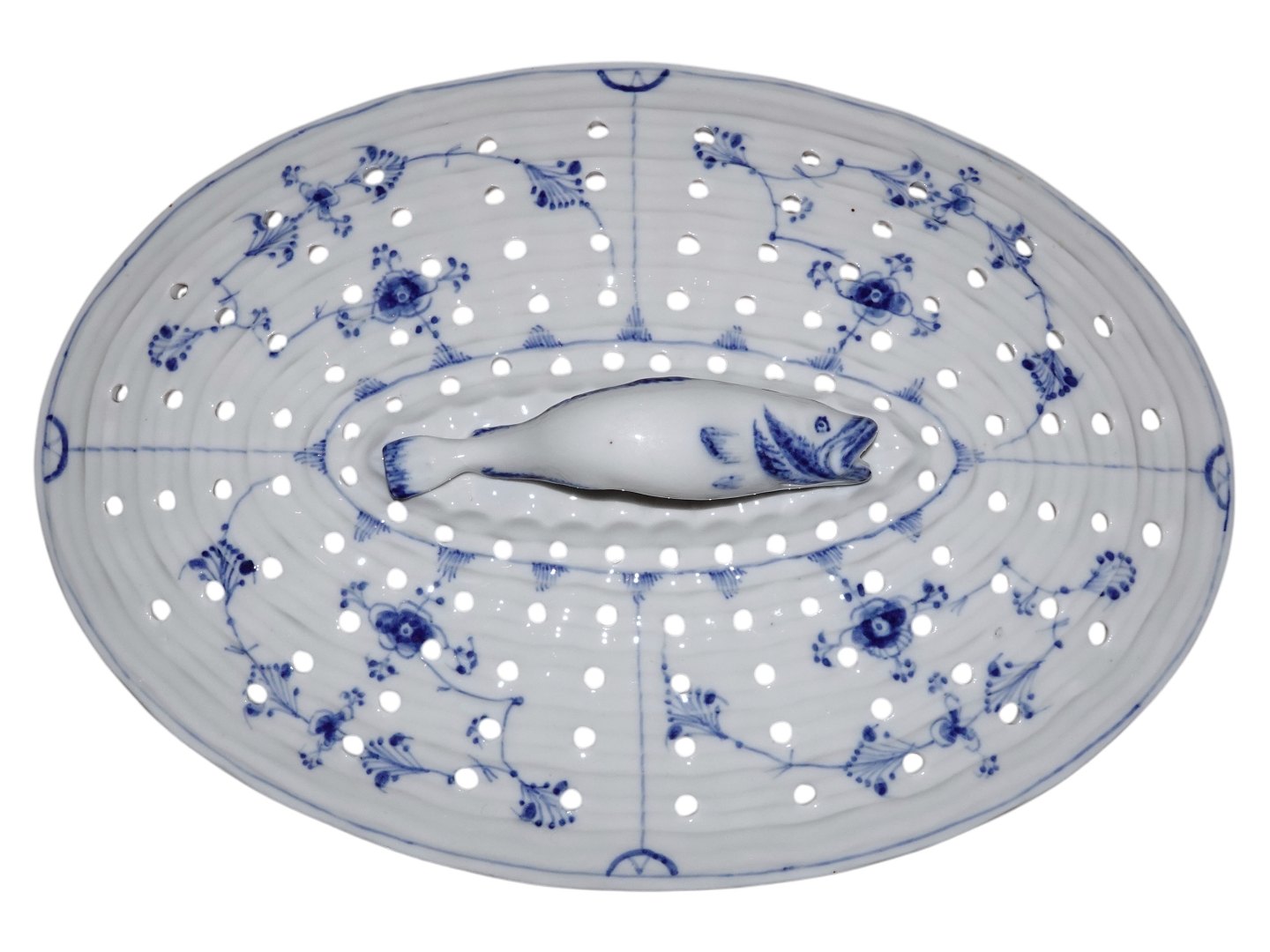 Royal Copenhagen Musselmalet Riflet, sjælden fiskerist med figur af fisk.