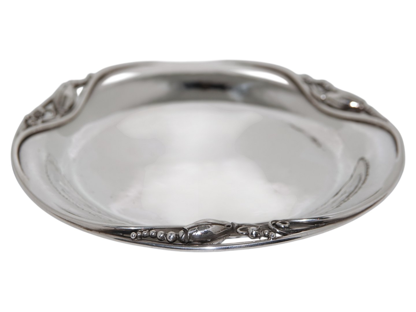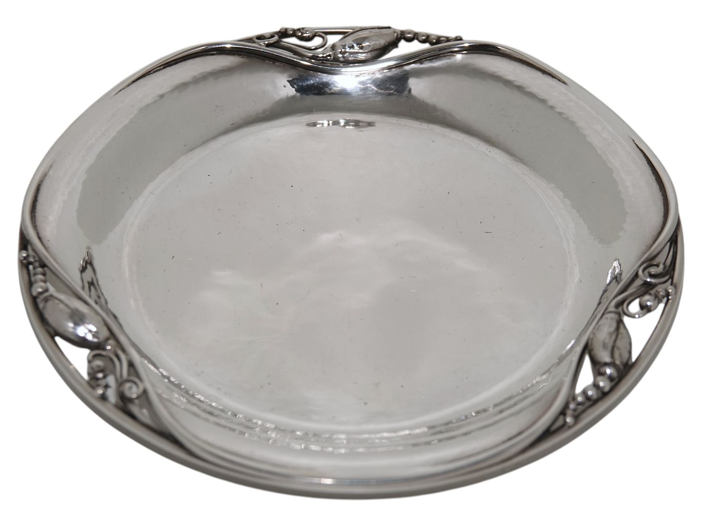 Georg Jensen Blossom (Magnolia) sterling silver, round tray. This was produced after 1945. Design number 2B. Diameter 15.0 cm. Excellent condition with no engravings.