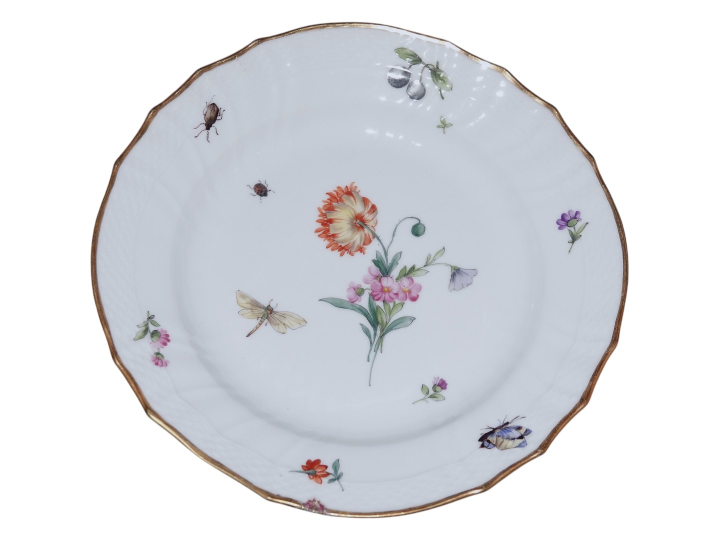 Set of five plates with insects and flowers with Danish Royal Monogram