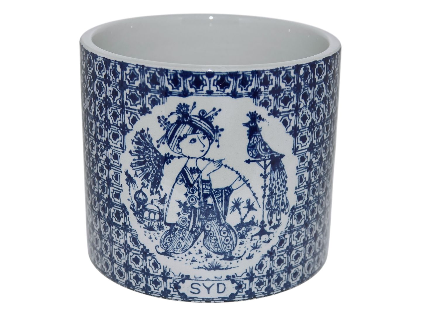 Bjorn Wiinblad art pottery, small blue flower pot with "South" decoration.
