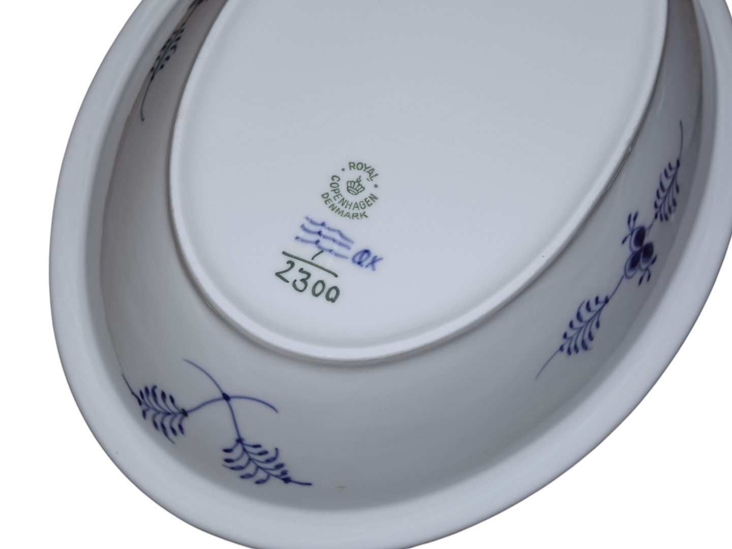Royal Copenhagen Blue Fluted Plain, rare oblong bowl. Factory third due to a little matte glaze on the inside. Length 24.0 cm., height 6.2 cm. Perfect condition with no chips, cracks or repairs.