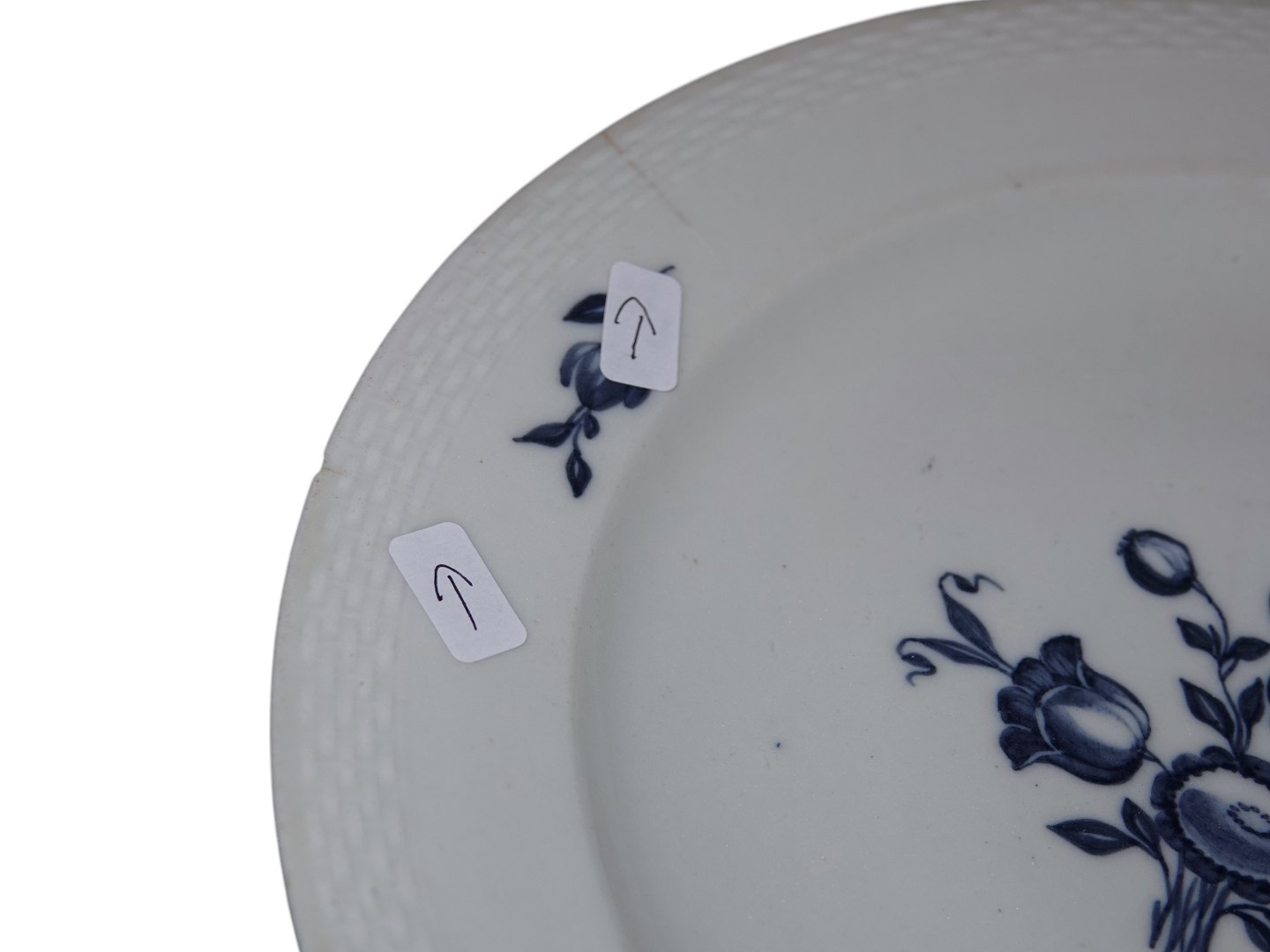 Royal Copenhagen Blue Flower Braided, an early dinnerplate that is greyish in the porcelain.