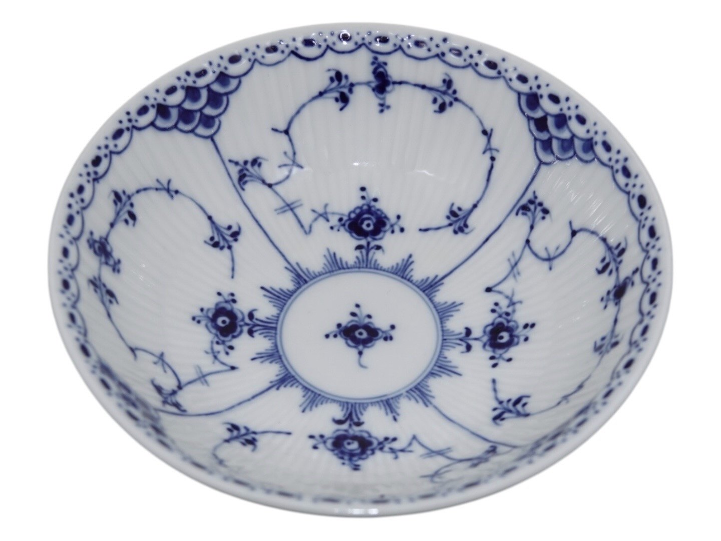 Royal Copenhagen Blue Fluted Half Lace, bowl for cereal. Decoration number 1/624. Factory second. Diameter 16.0 cm. Perfect condition with no chips, cracks or repairs.