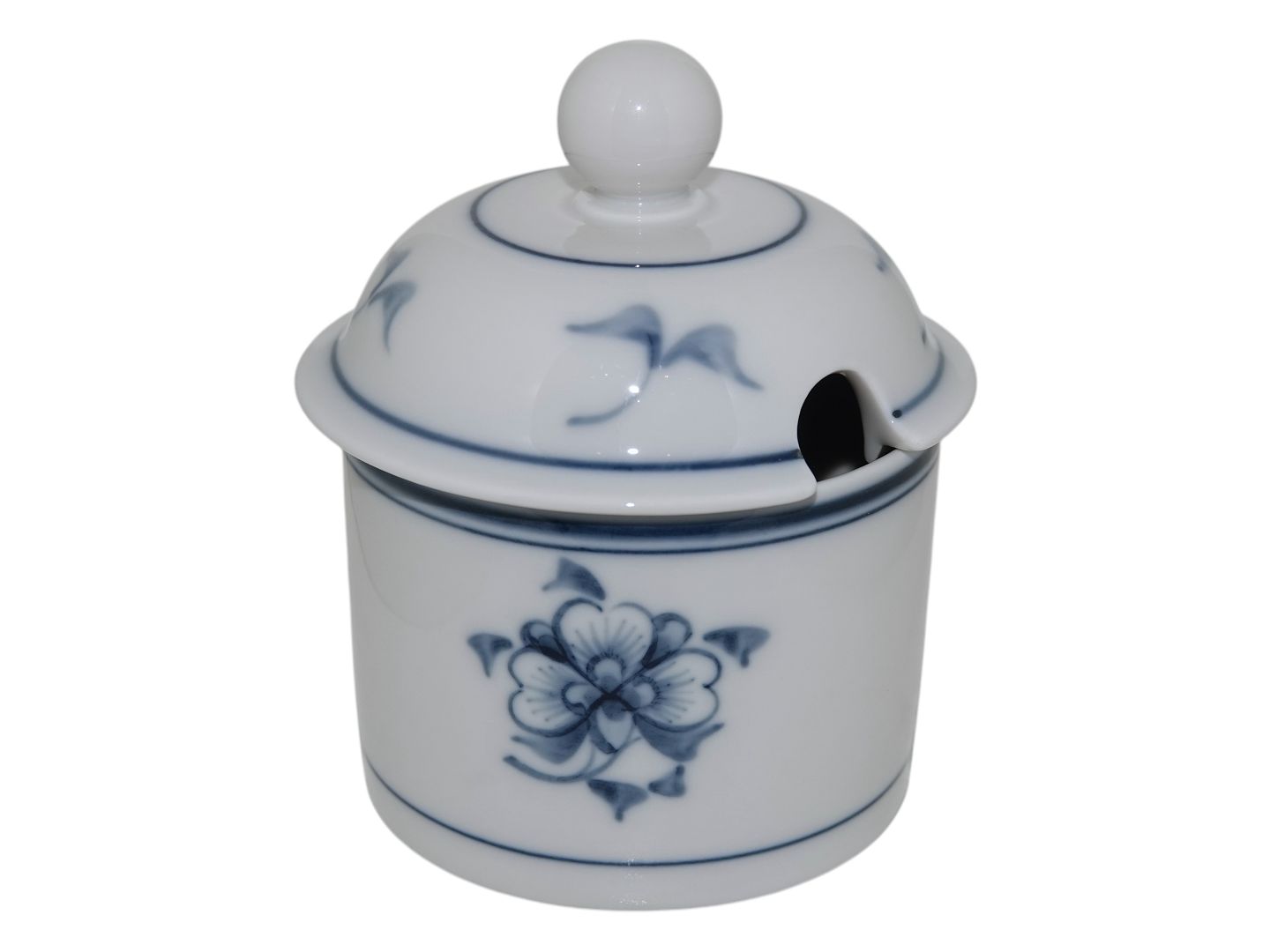 Royal Copenhagen Noblesse, sennepskrukke. Designet af Niels Refsgaard og Erik Reiff i 1982. Dekorationsnummer 112/15124. 1. sortering. Højde 9,5 cm. Perfekt stand uden fejl.