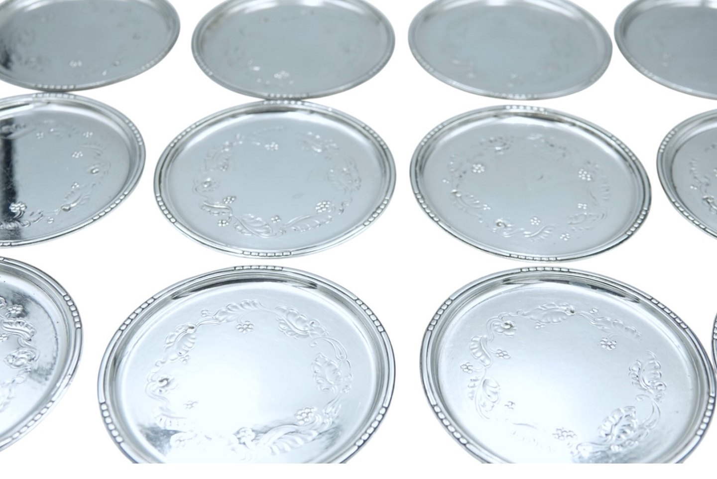 Georg Jensen Sterlingsølv, glasbakke dekoreret med druer. Dessinnummer 51C. Diameter 7,6 cm. Fin og velholdt stand uden indgraveringer.