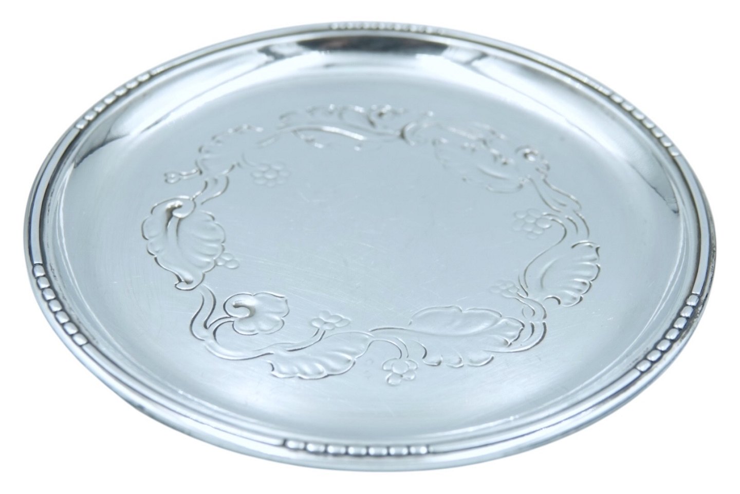 Georg Jensen Sterlingsølv, bakke til en vinflaske dekoreret med druer.