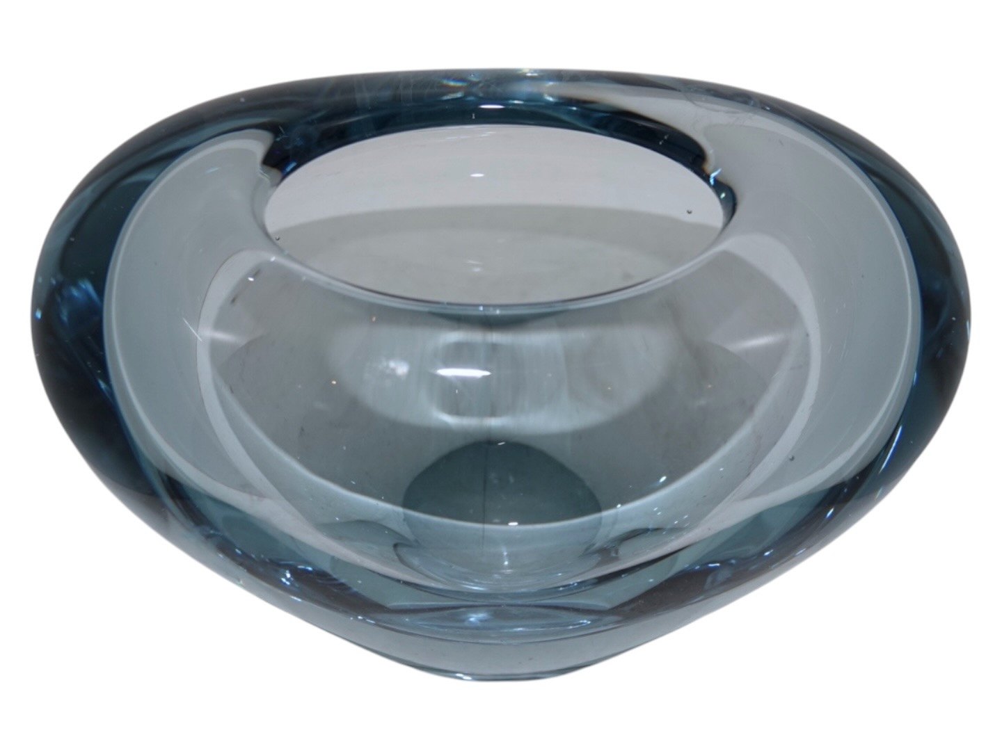 Holmegaard lyseblå hjertevase designet af Per Lütken. Fuldt signeret og dateret 1959. Længde 14,0 cm., højde 10,0 cm. Fin fejlfri stand.