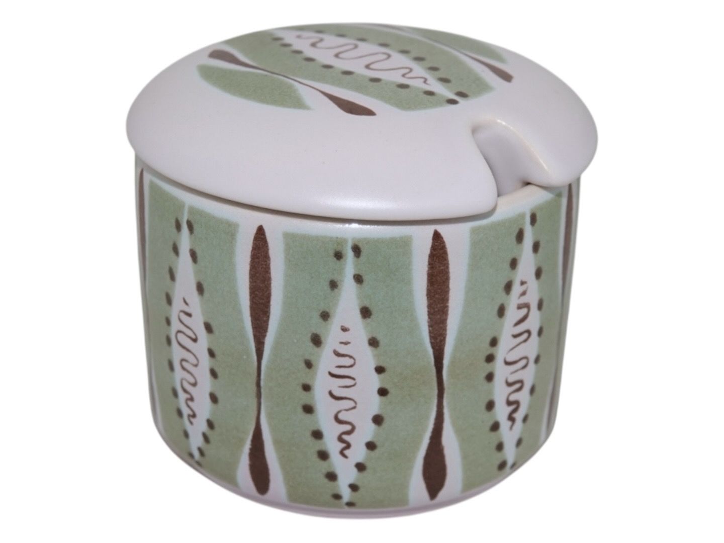 Søholm keramik, marmeladekrukke med grøn dekoration.