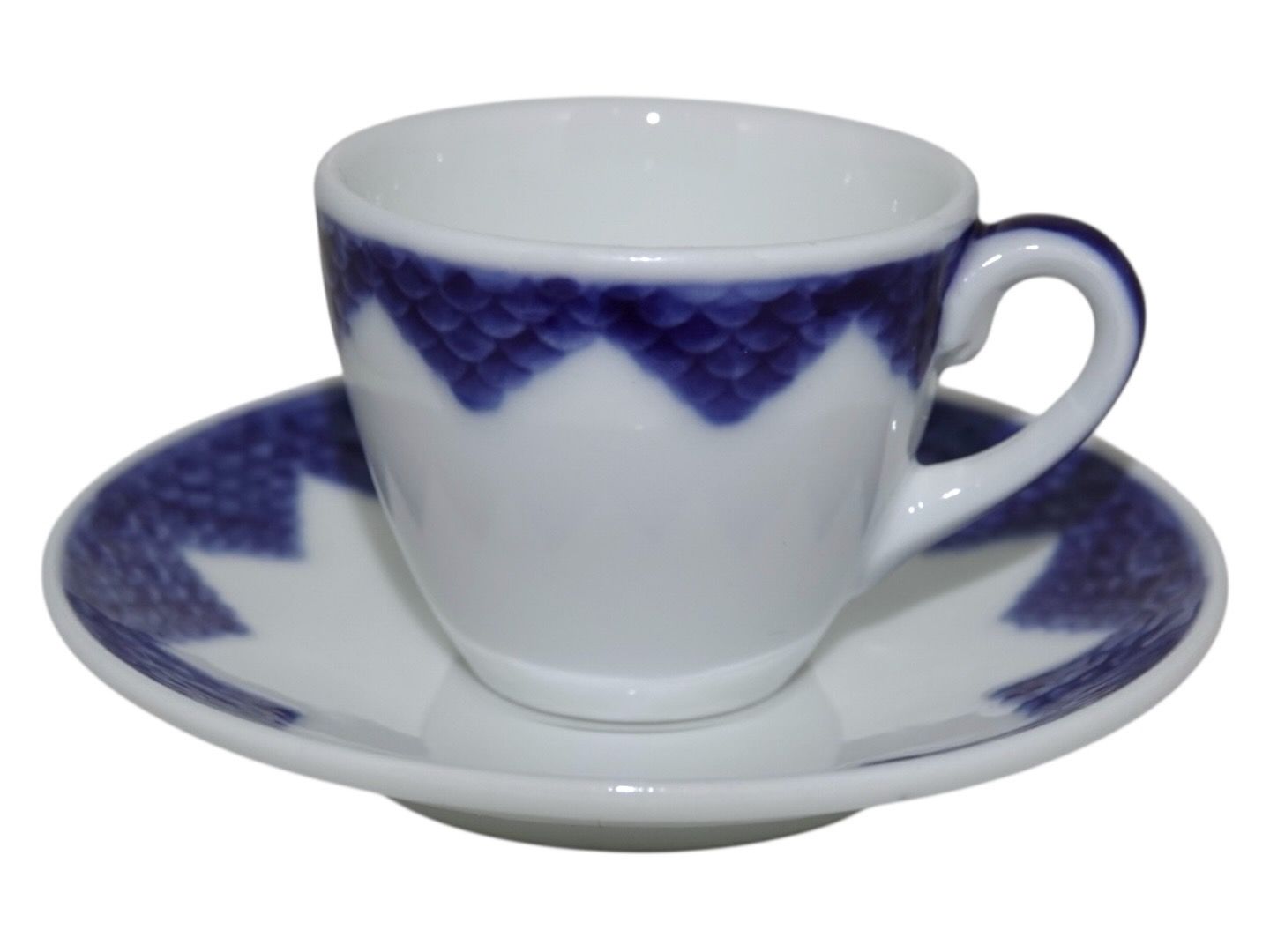 Bing & Grøndahl Blåt og Hvidt tykt jernporcelæn, lille espressokop med underkop.