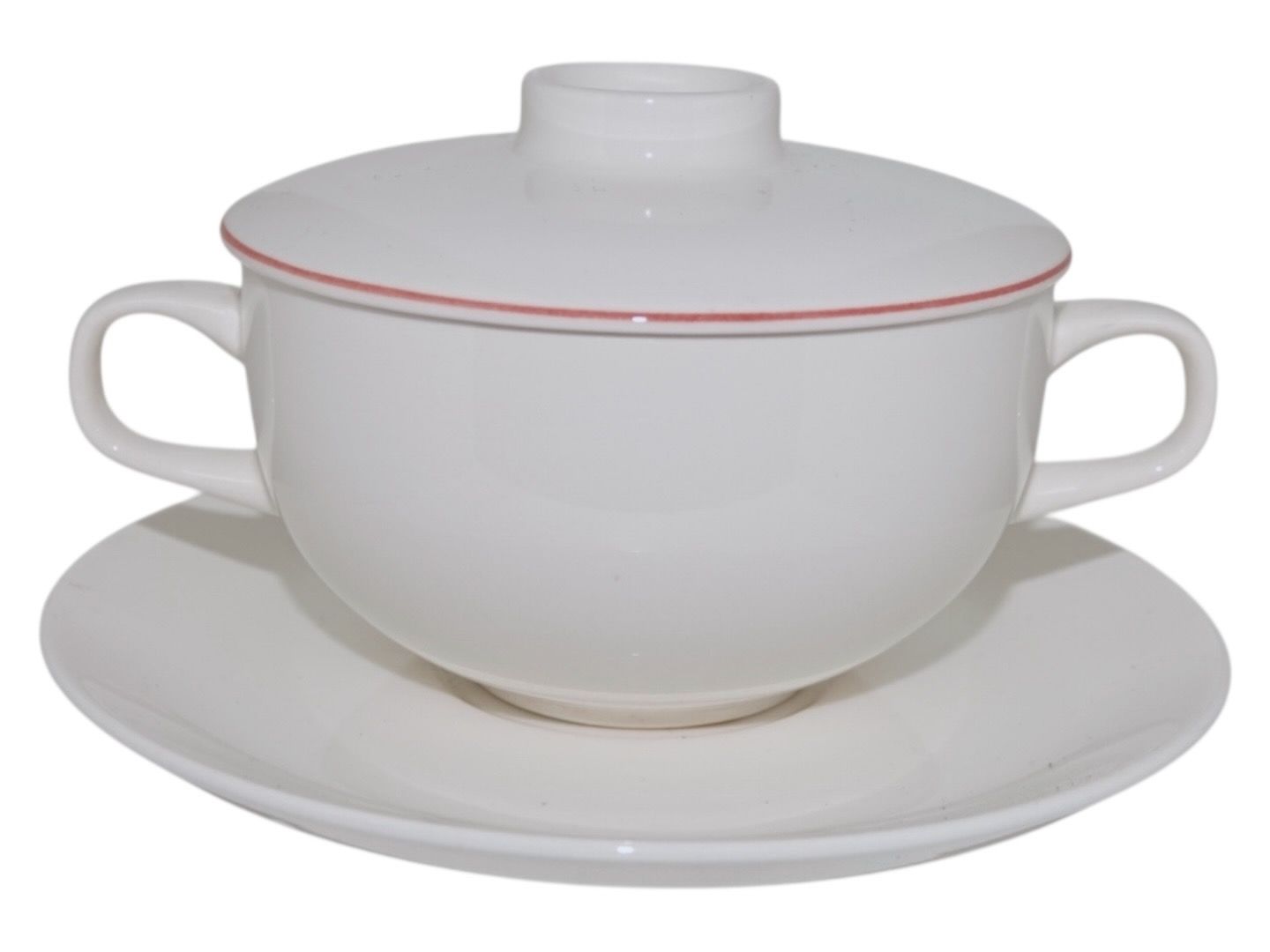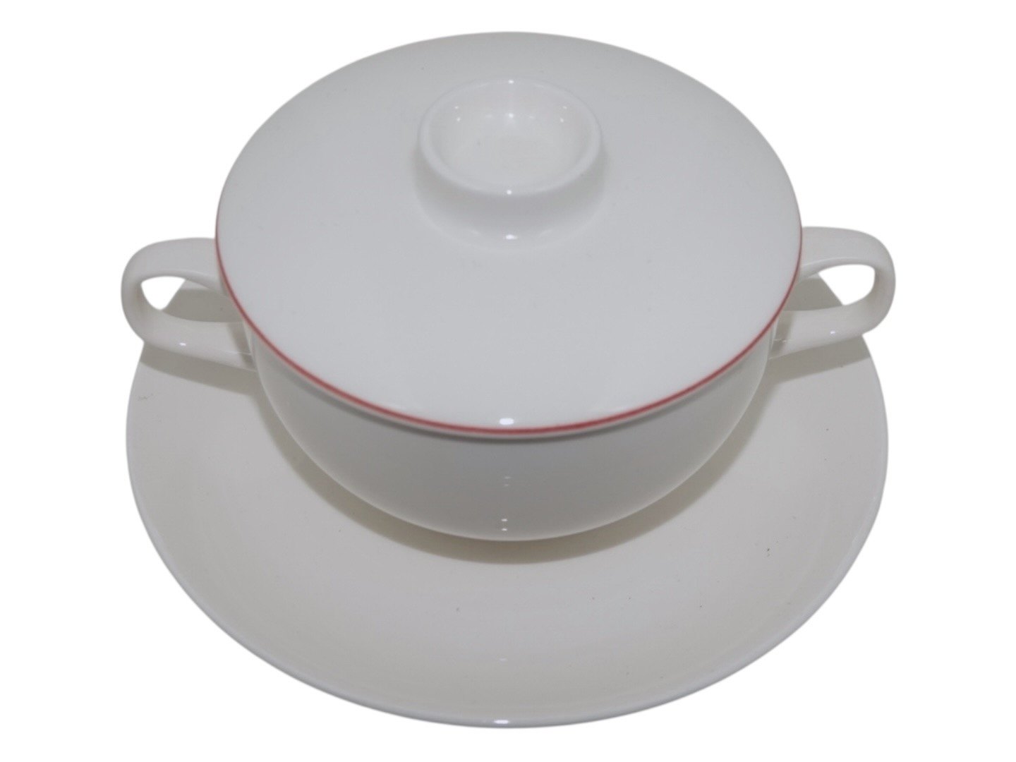 Royal Copenhagen Red Line (Red top), lidded soup cup with matching saucer.