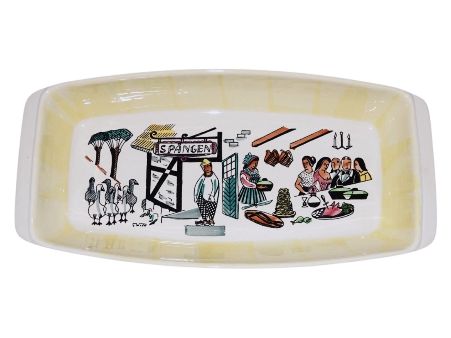 Deco Helsingborg Sweden, large Skånska yellow dish from the 1950'es. Length 39.0 cm., width 19.0 cm. Perfect condition.