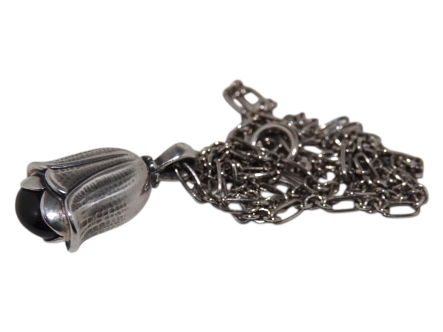 Georg Jensen sterlingsølv Årssmykke 2007, vedhæng med rød granat og halskæde.