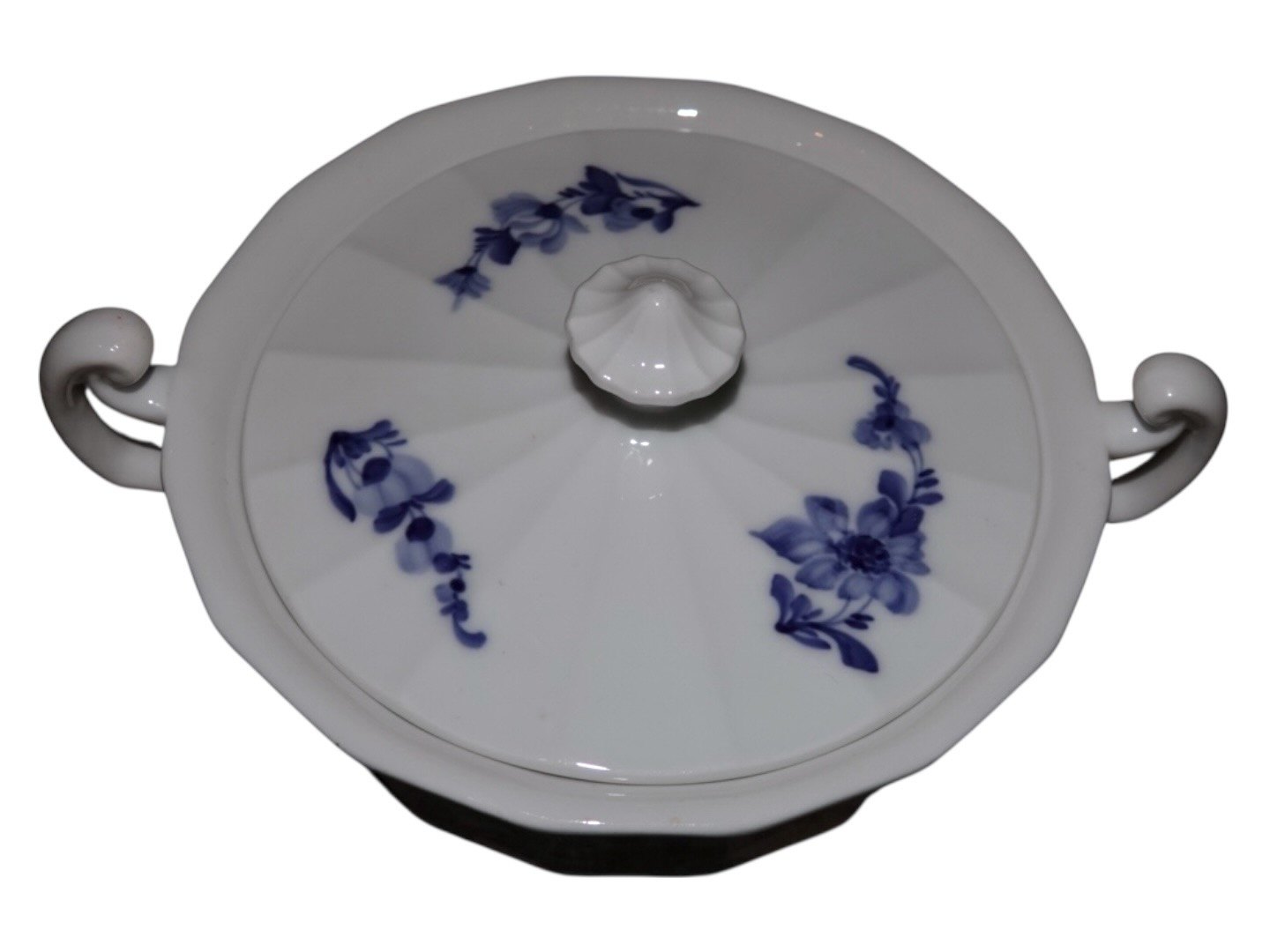 Royal Copenhagen Blå Blomst Kantet, sjælden ekstra stor sukkerskål med låg.