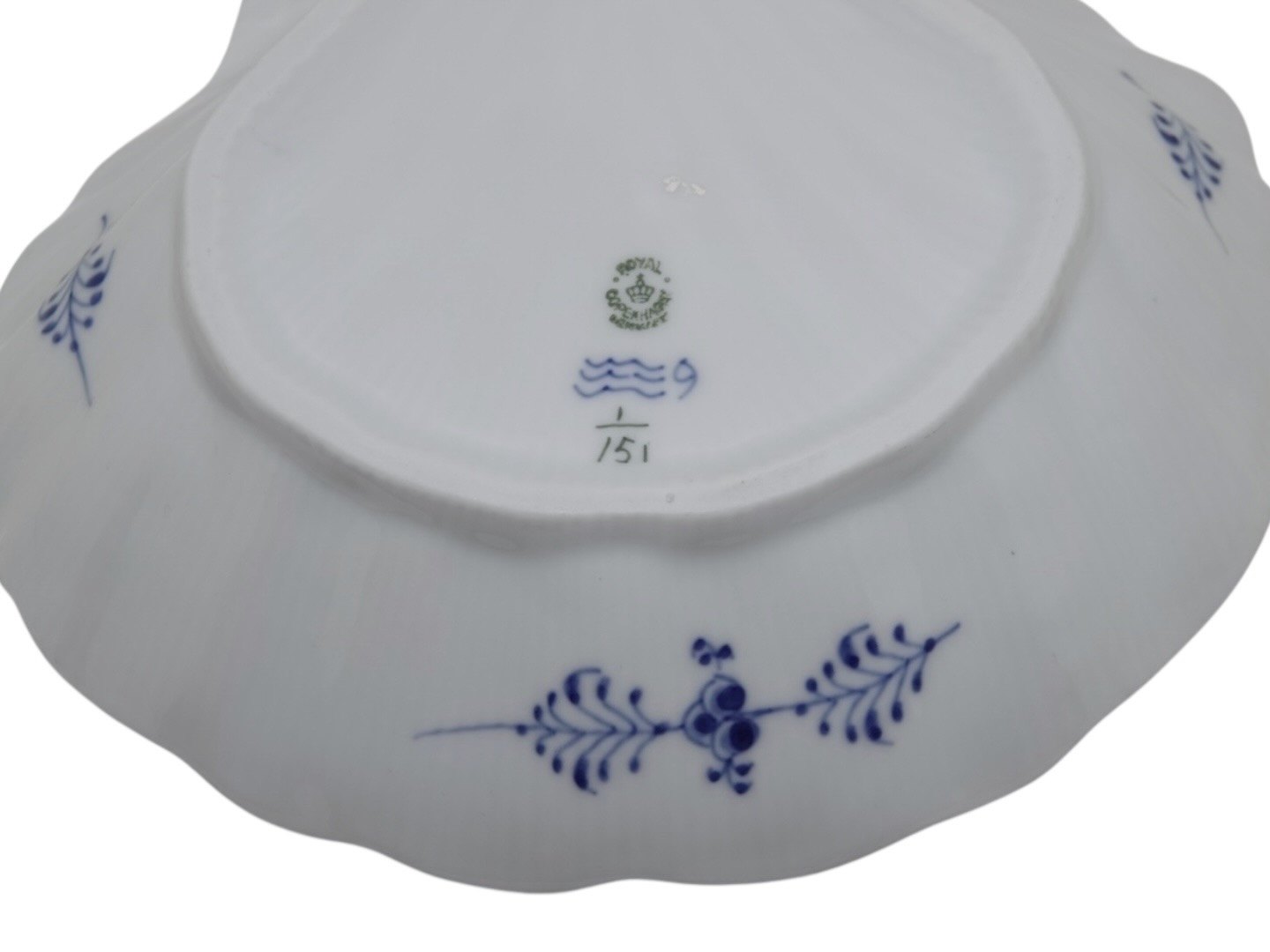 Royal Copenhagen Musselmalet Riflet, sjælden muslingeformet skål.