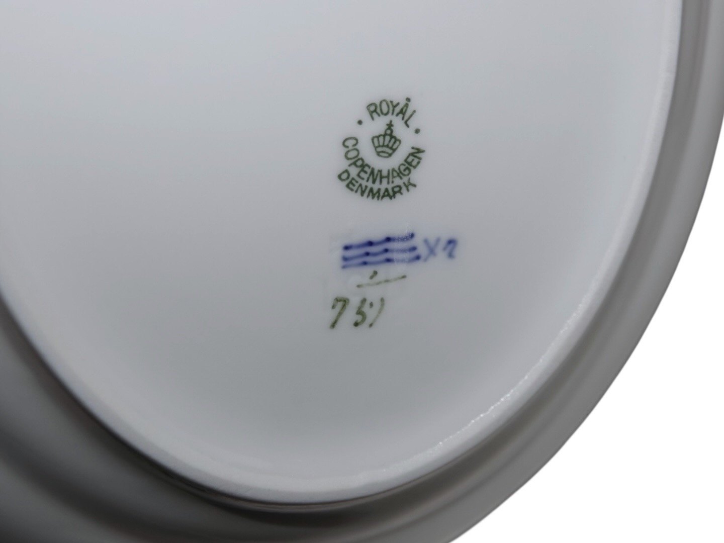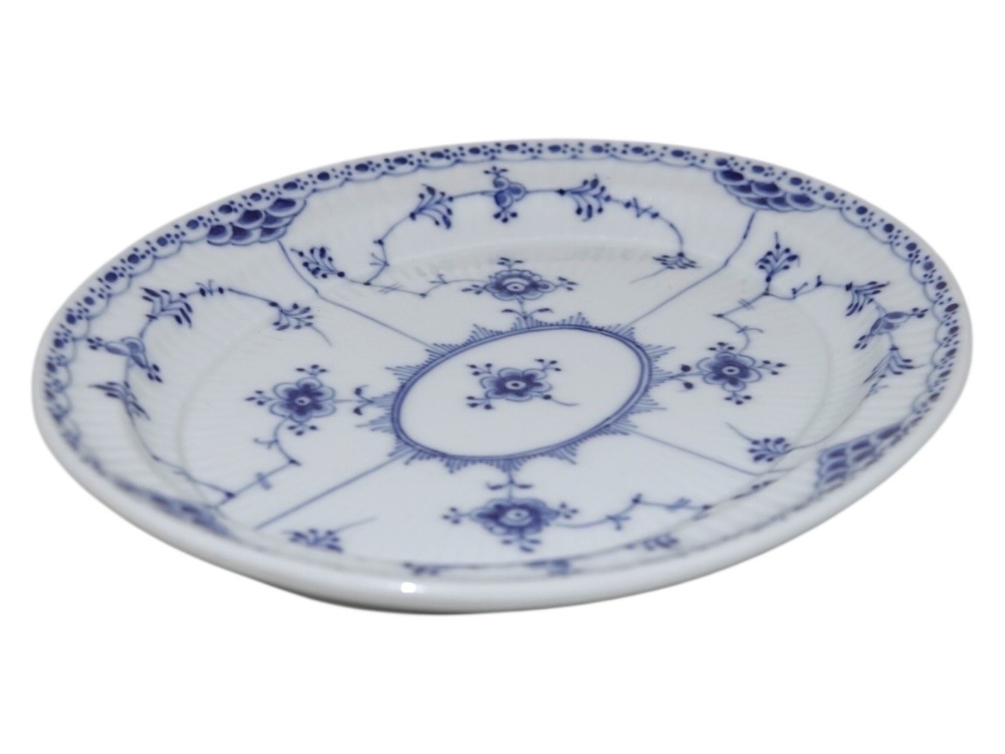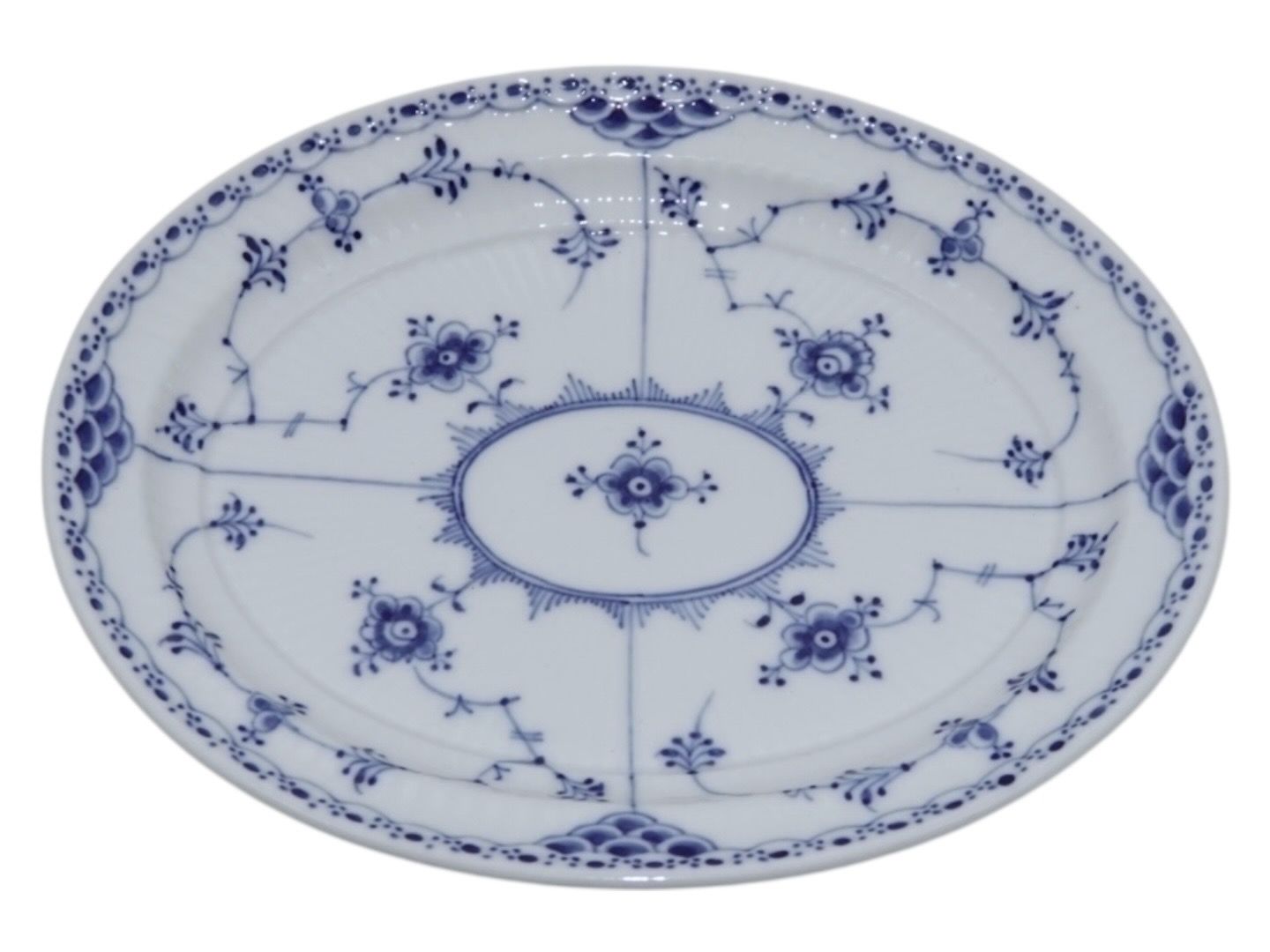 Royal Copenhagen Blue Fluted Half Lace, small platter. The factory mark shows, that this was made in 1938. Decoration number 1/751. Factory second. Length 21.0 cm. Perfect condition with no chips, cracks or repairs.