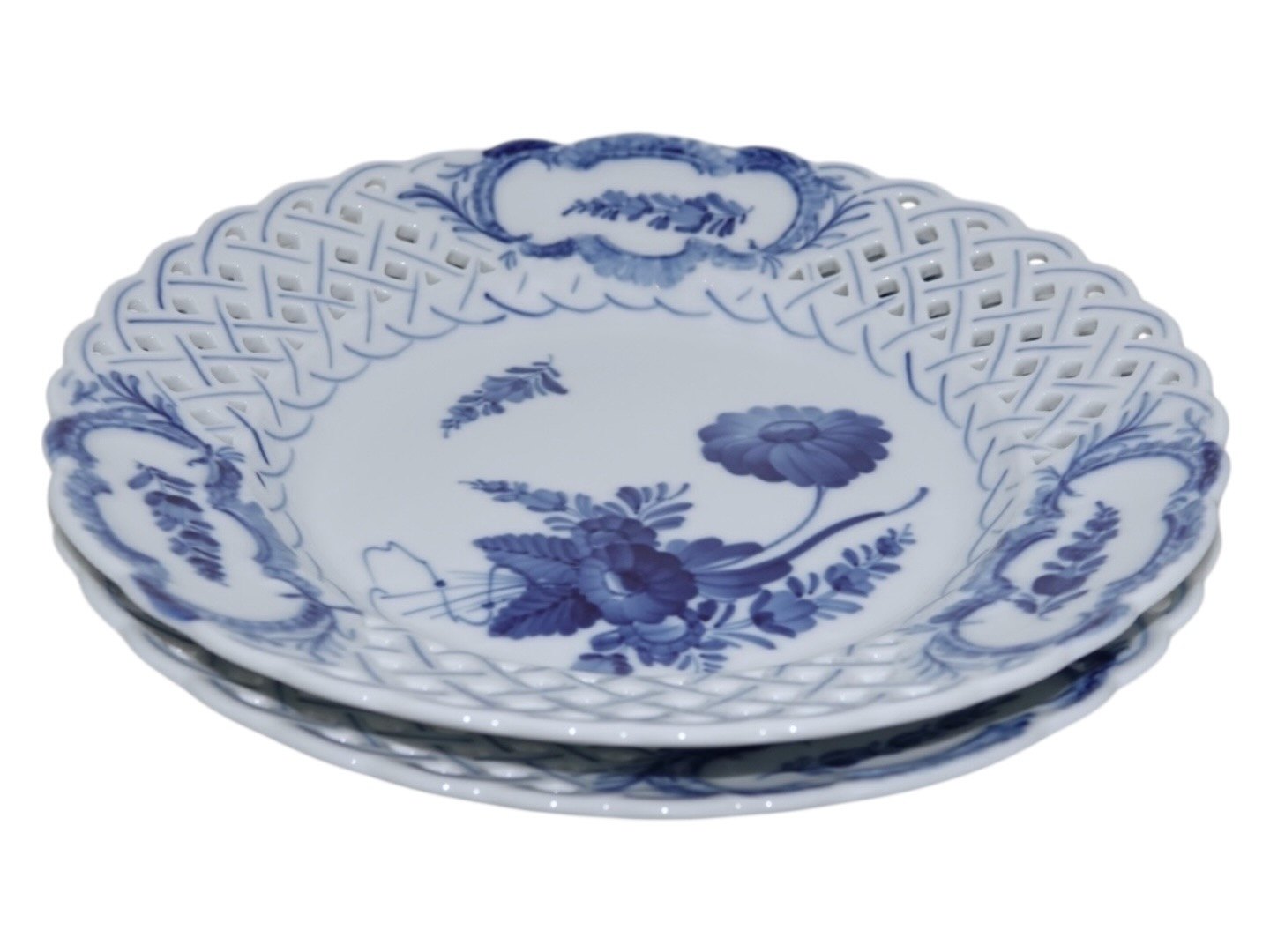 Royal Copenhagen Blå Blomst Svejfet, stor tallerken med dobbelt blondekant. Dekorationsnummer 638. 1. sortering. Diameter 23,8 cm. Perfekt stand uden fejl.