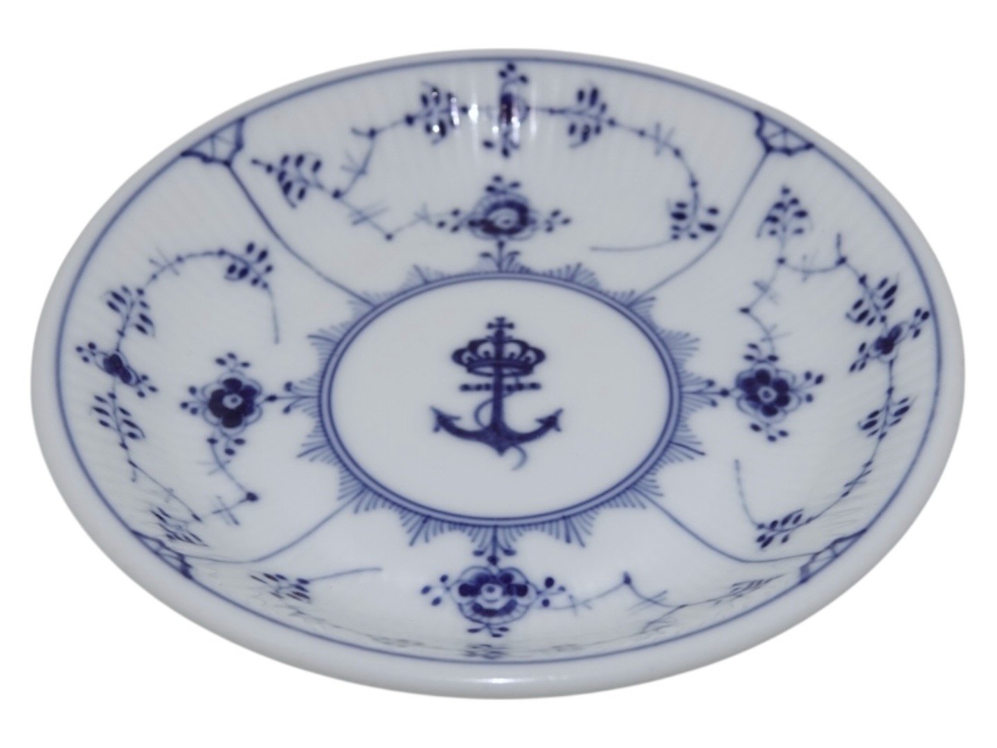Royal Copenhagen Musselmalet Riflet Hotelporcelæn / jernporcelæn, sjælden og stor kop og underkop med logo fra Søværnet.