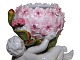 To små urtepotteskjulere i porcelæn med hortensia og engle.
