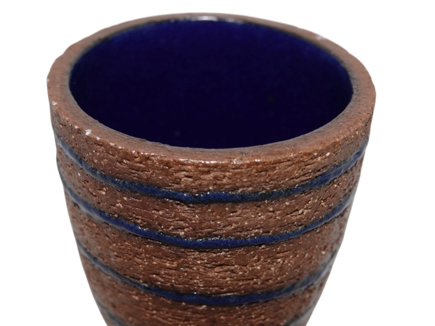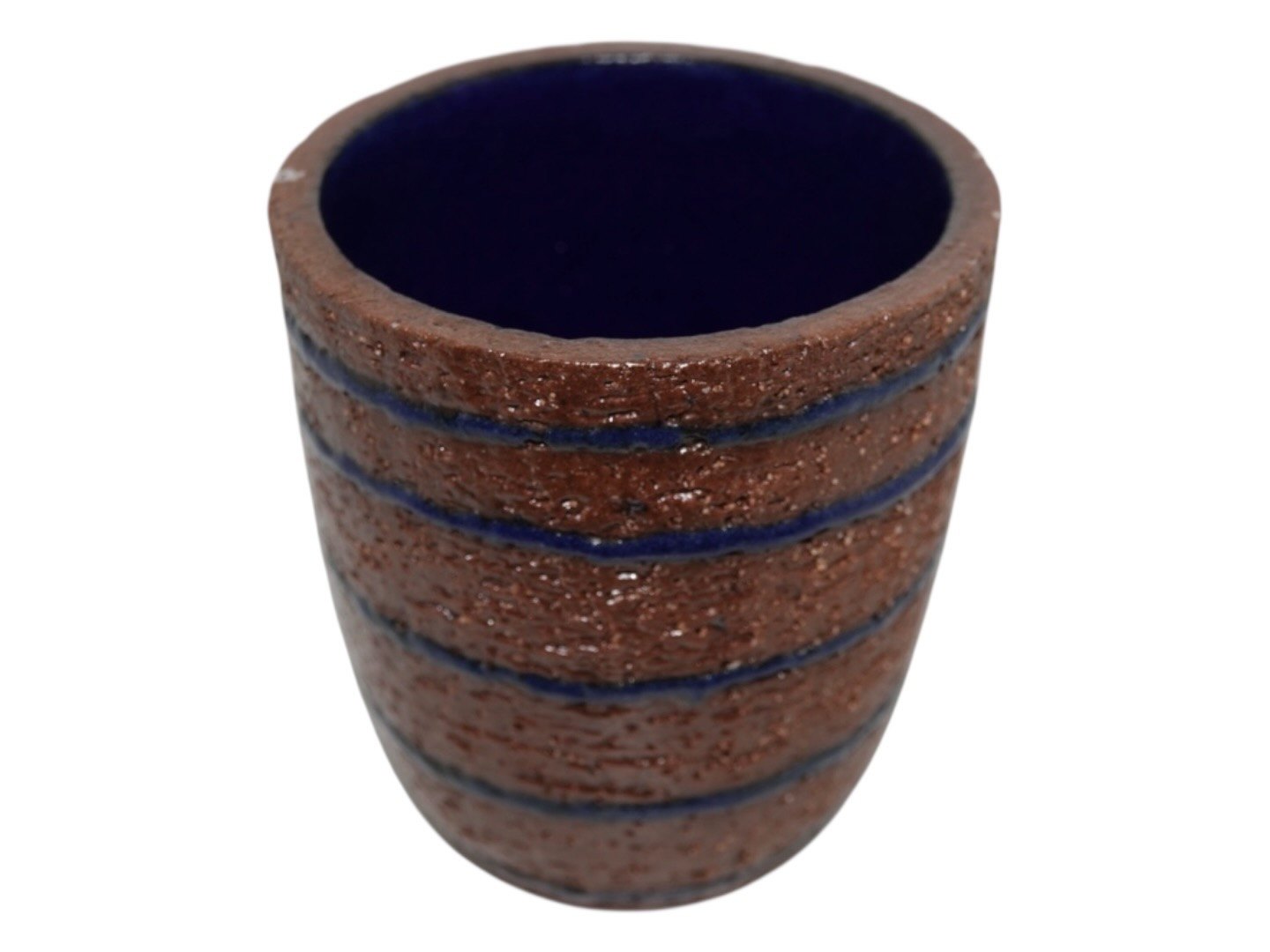 Christian Poulsen keramik tidlig vase med striber. Højde 10,6 cm., diameter 8,9 cm. Der er et kantskår i toppen, se foto. Ellers fejlfri.