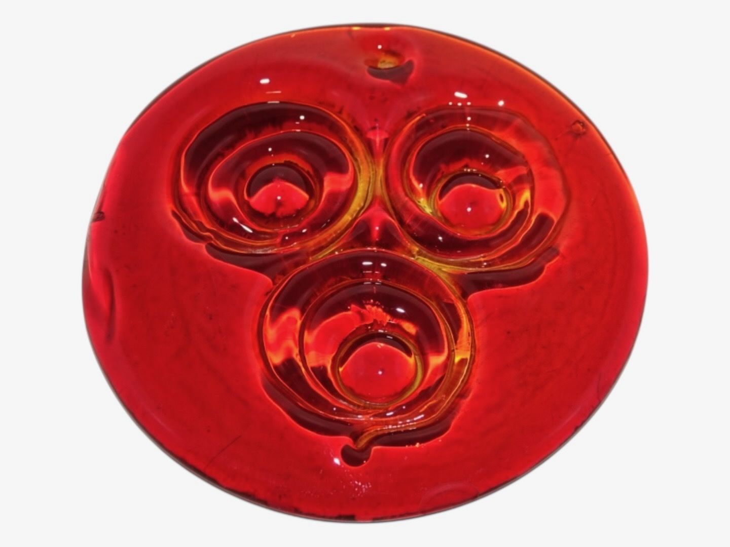 Holmegaard, rød solfanger fra 1970'erne. Diameter 10,0 cm. Perfekt stand. Internt varenummer: SOLFANGER9