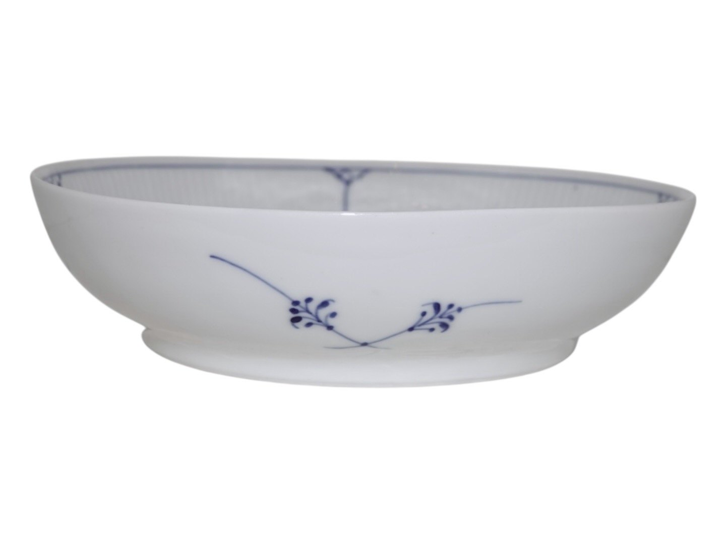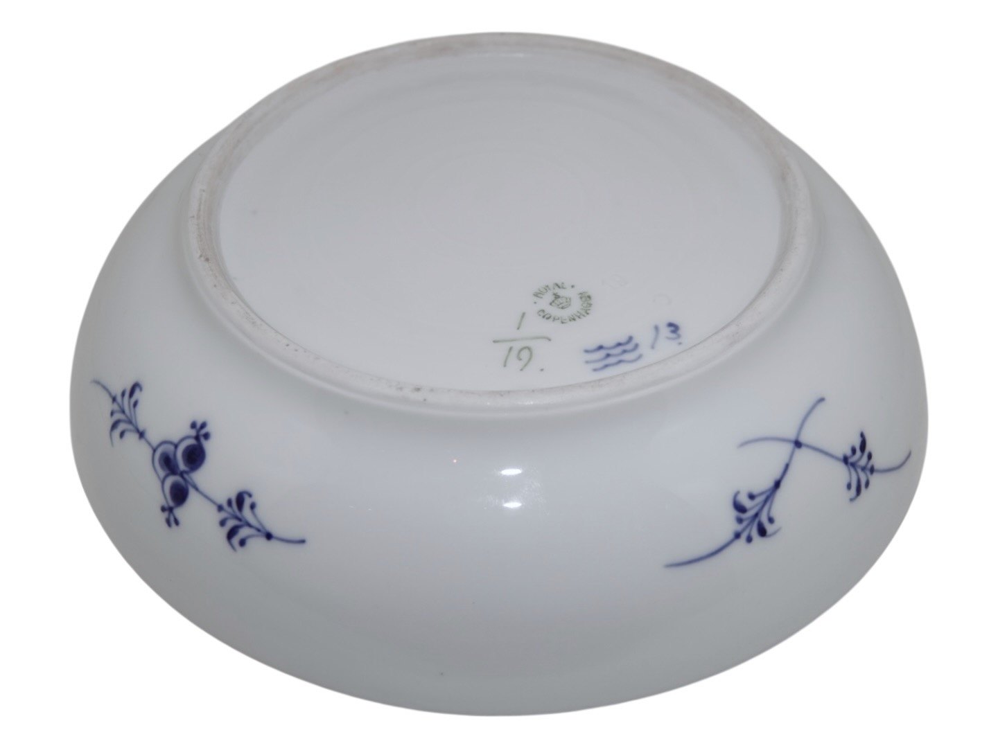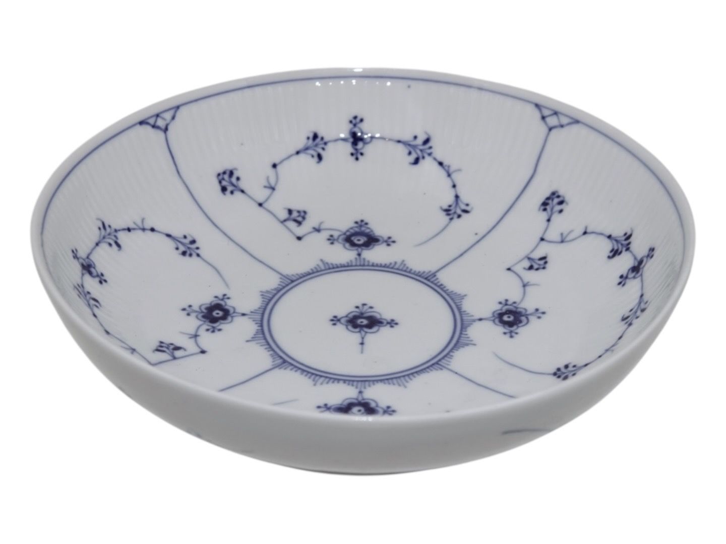 Royal Copenhagen Musselmalet Riflet, rund kartoffelskål. Af fabriksmærket ses det, at denne er produceret i mellem 1898 og 1923. Dekorationsnummer 1/19. 1. sortering. Diameter 20,5 cm. Perfekt stand uden fejl.