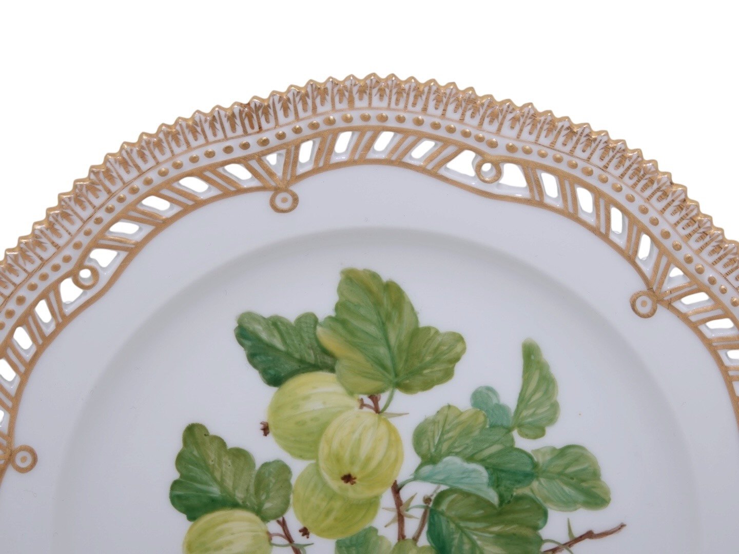Royal Copenhagen Flora Danica, fruit plate decorated with goose berry and with pierced border.