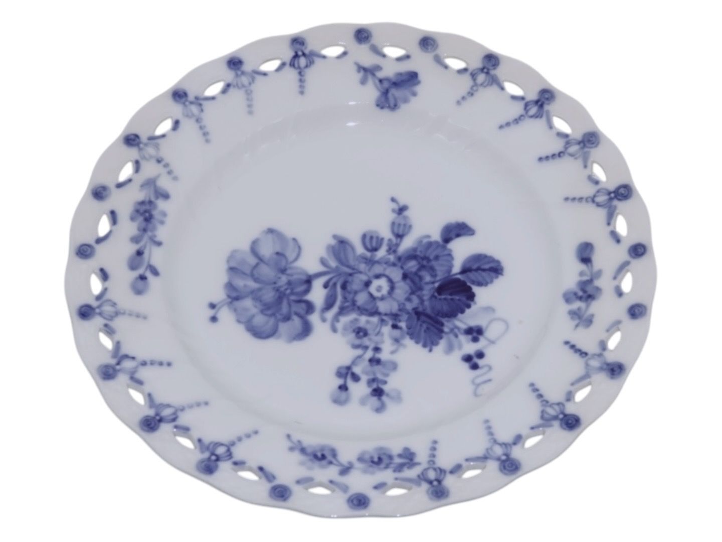 Blå Blomst Fad med gennembrudt kant fra ...