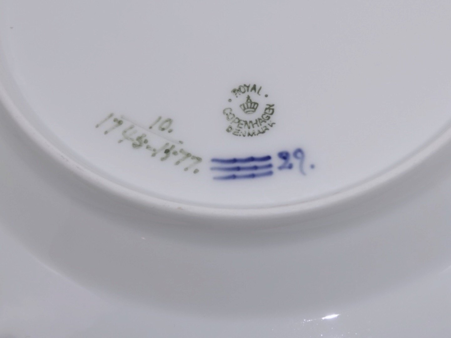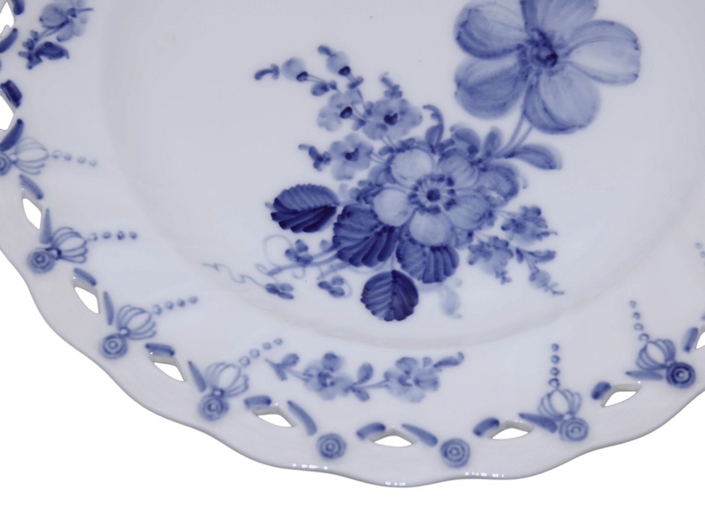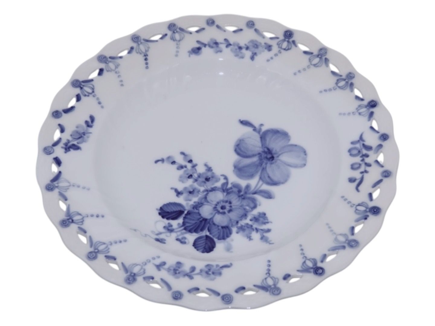 Royal Copenhagen Blå Blomst Svejfet, rund tallerken med helblonde kant. Den kan også bruges som underfad til frugtkurv nummer 10/1577.