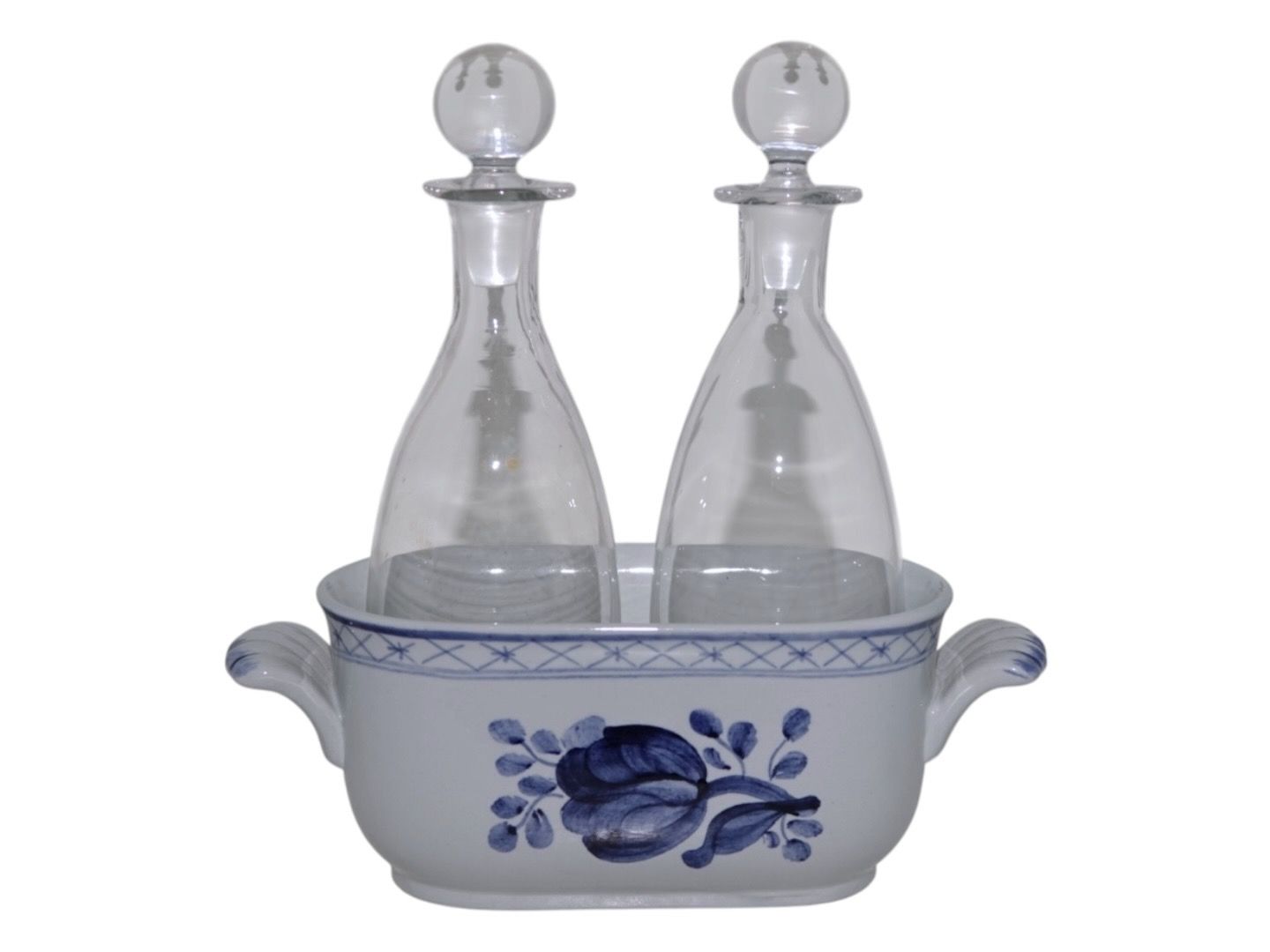 Aluminia Tranquebar, olie- og eddikeflaske i holder.