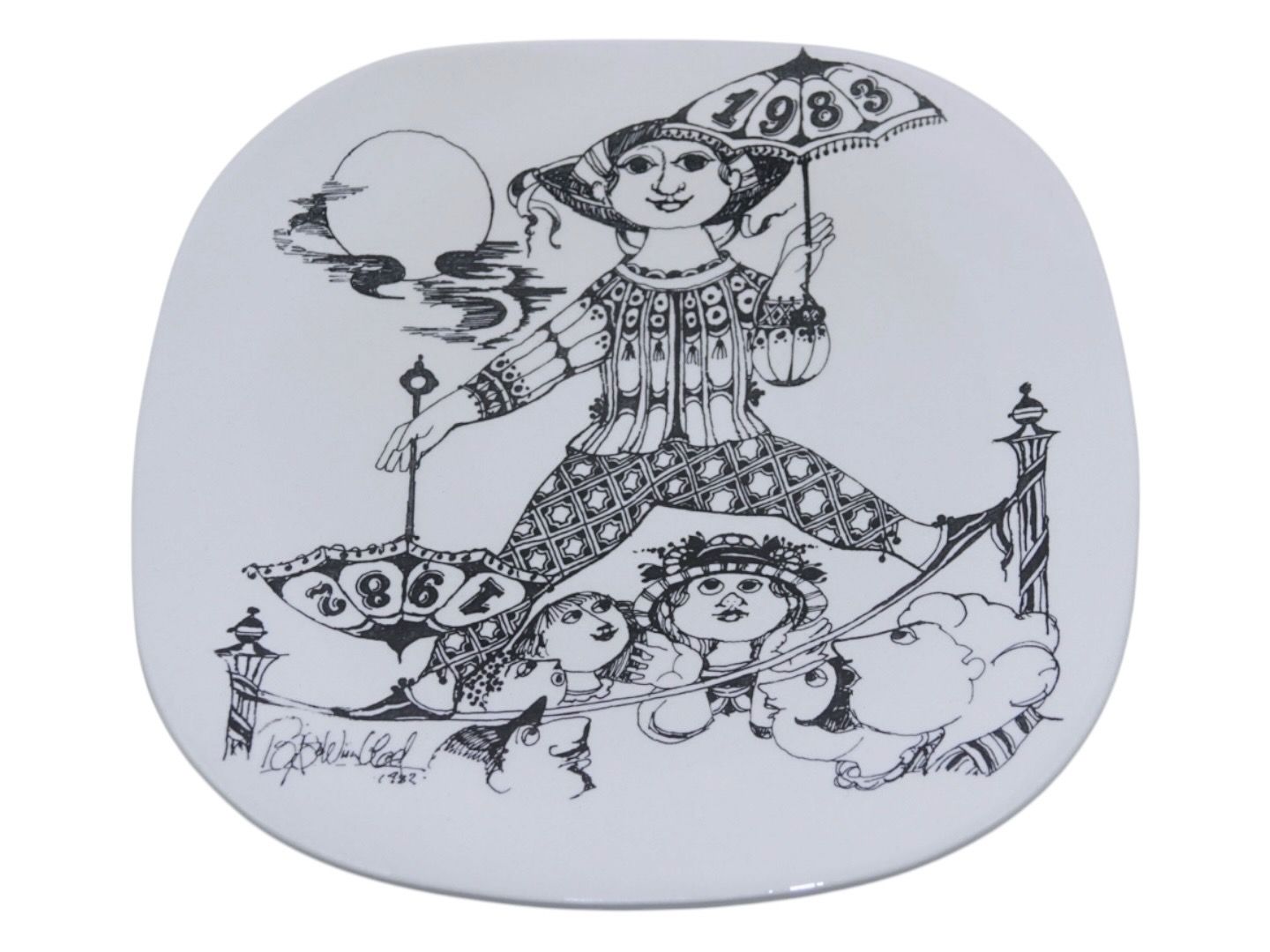 Sort Bjørn Wiinblad årsplatte 1982-1983. Produceret hos Nymølle Keramik. Måler 18,8 x 18,8 cm. Perfekt stand.