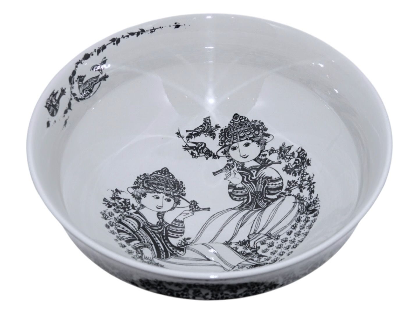 Bjørn Wiinblad stor rund skål med sort dekoration.