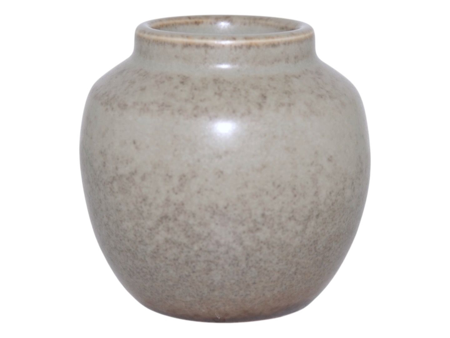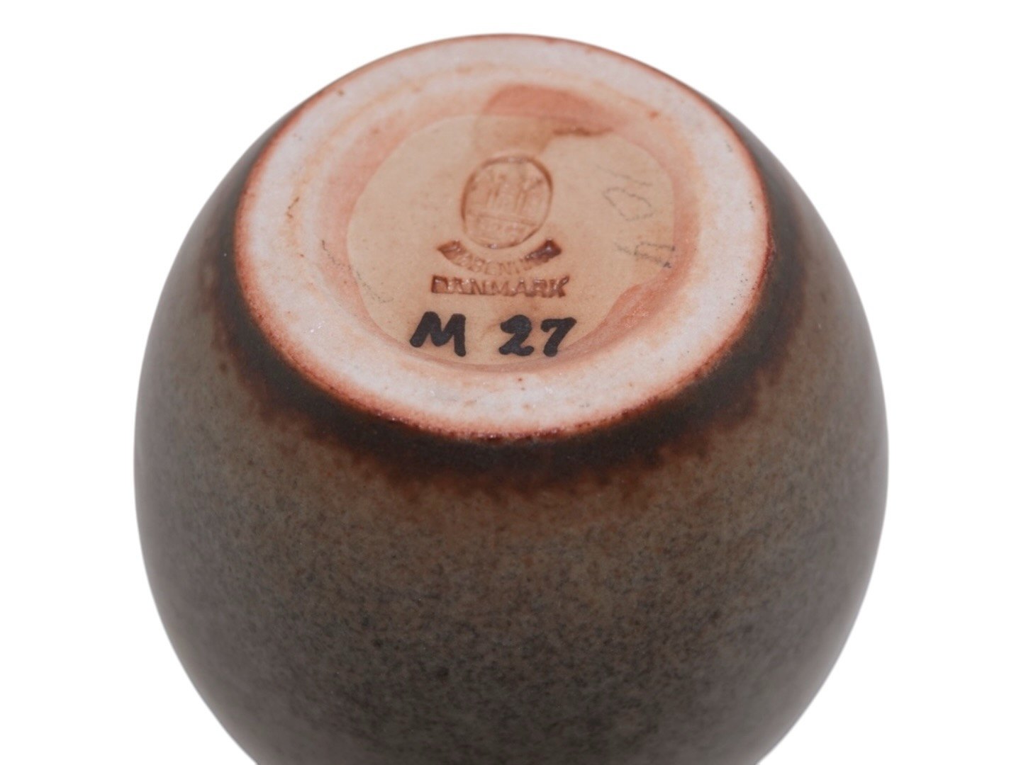Lille Bing & Grøndahl keramikvase i enkel moderne stil med en lys glasur. Den er mærket med nummer M27. Denne er produceret mellem 1915 og 1948. 1. sortering. Højde 6,6 cm. Perfekt stand uden fejl.