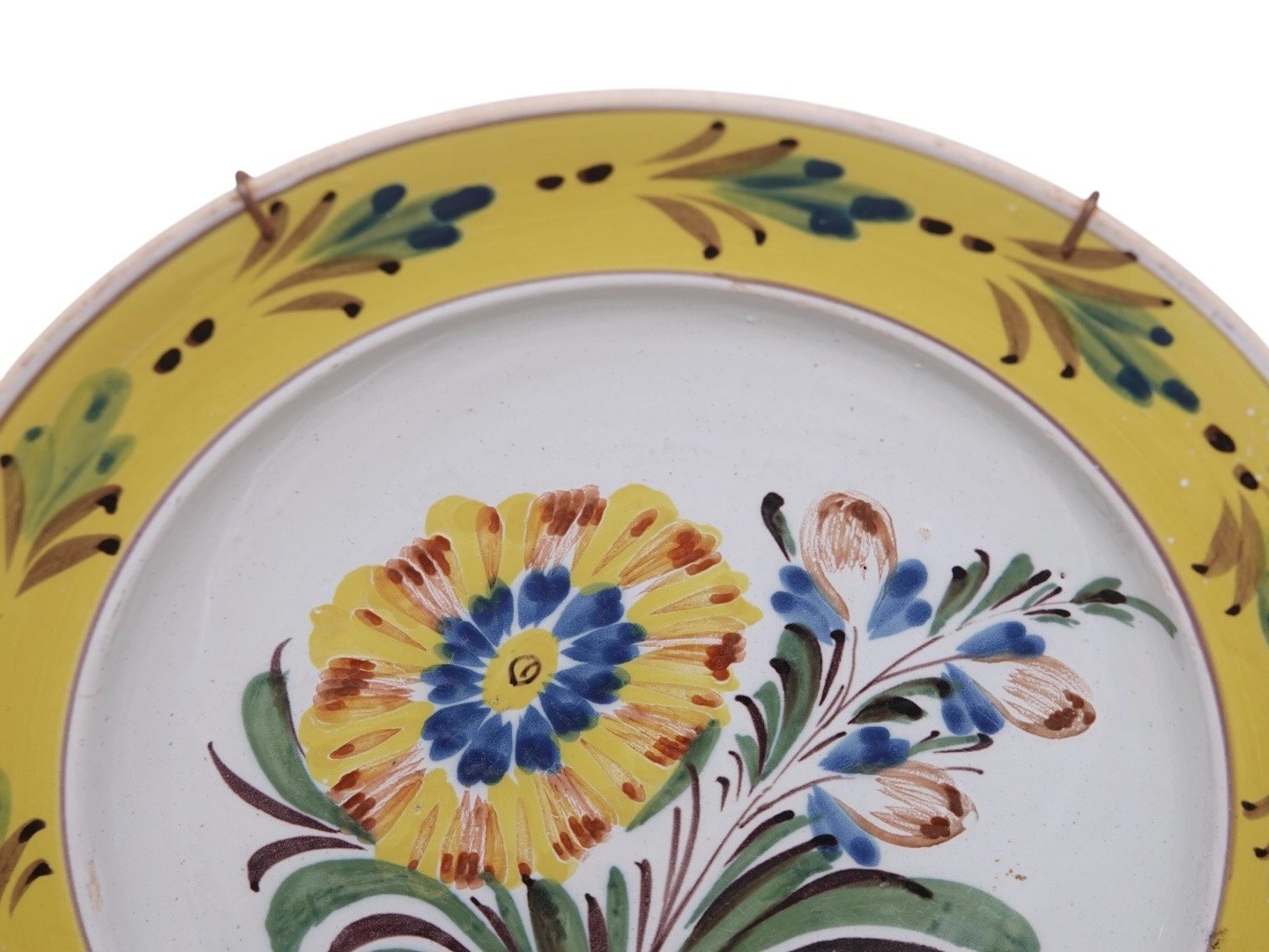 Kellinghusen fajance, tallerken med blomster fra perioden 1763 til 1860. Diameter 22,7 cm. Der er lidt små glasurafskalninger på kanten ellers fin og velholdt stand.