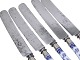 Royal Copenhagen Musselmalet Halvblonde, middagskniv med pistolskaft og originalt Raadvad knivblad. Længde 25,5 cm. Der er mærker på knivbladet ellers fejlfri stand.