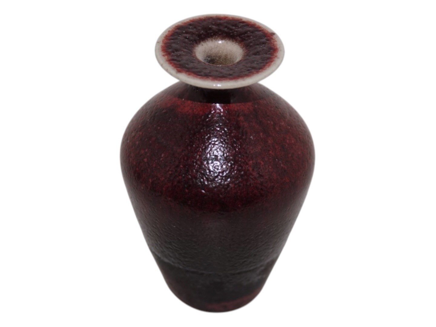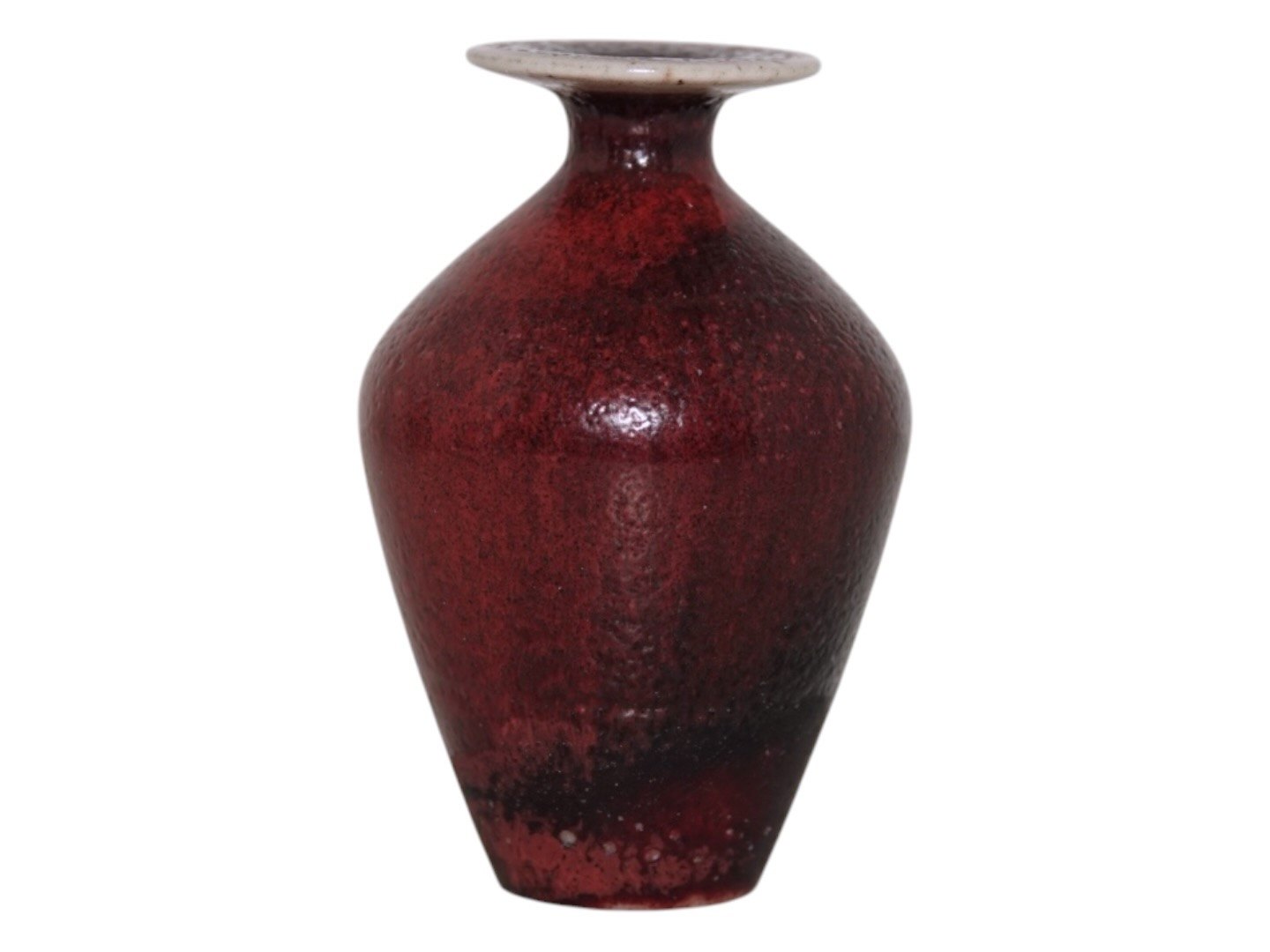 Höganäs keramik fra Sverige, miniaturevase med rød glasur designet af John Andersson (1899-1965). John Andersson var en af Sveriges bedste drejere til miniature vaser. Højde 5,2 cm. Perfekt stand.