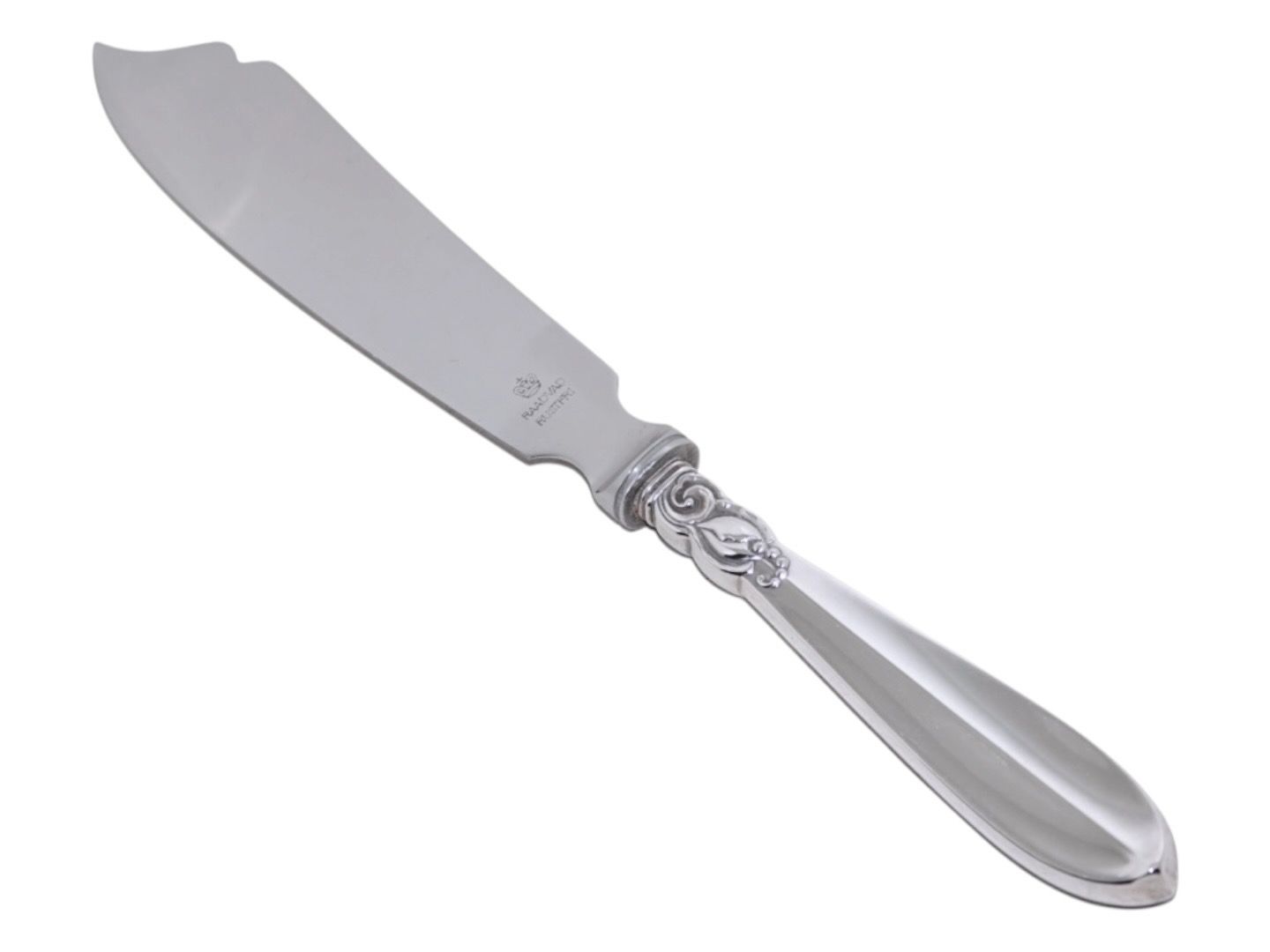 Prinsesse tretårnet sølv og rustfrit stål fra Frigast sølv, lagkagekniv. Længde 28,0 cm. Fin fejlfri stand uden indgraveringer.