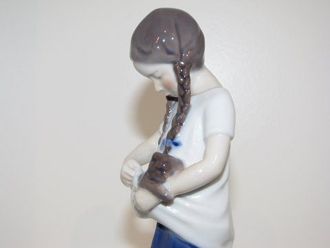 Bing & Grøndahl, Figur, pige med Hundehvalp. Dekorationsnummer 1779. 2. sortering. Højde 17 cm. Perfekt stand uden fejl.