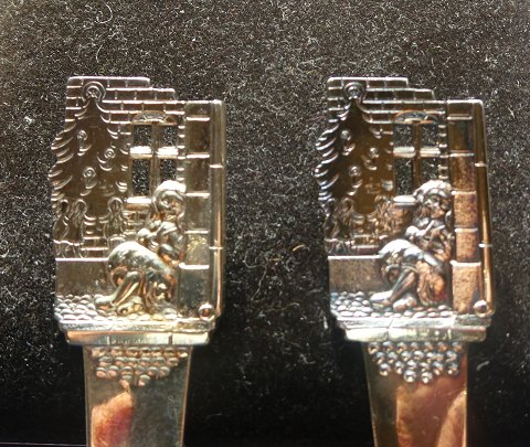 Lille Claus & Store Claus børnebestik i forgyldt sølv. Barneske