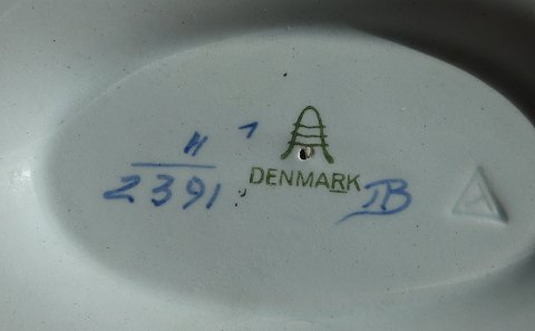Oval sauceskål eller sovsekande på fast fod nr. 2391 i 1.sort. og i pæn stand med almindelig brugsslitage.